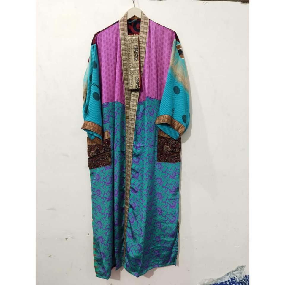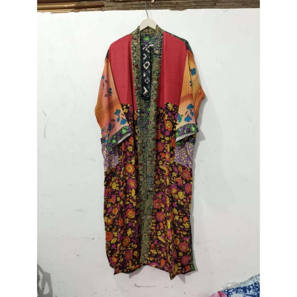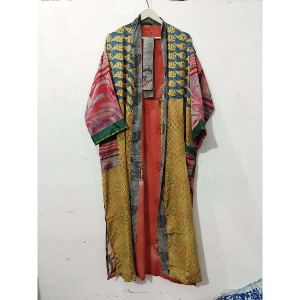 ชุดกิโมโนอินเดียแบบต่างๆ ชุดคลุมผ้าไหมลายดอกไม้ ชุดกิโมโนผ้าซารีวินเทจ ชุดคลุมซารีเนื้อนุ่ม ชุดราตรีสำหรับงานปาร์ตี้ริมชายหาด ชุดกิโมโนผ้าไหมทำมือจากอินเดีย