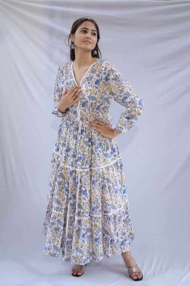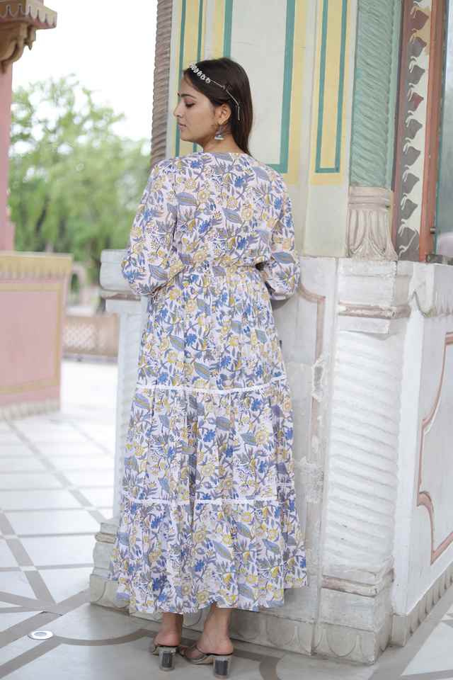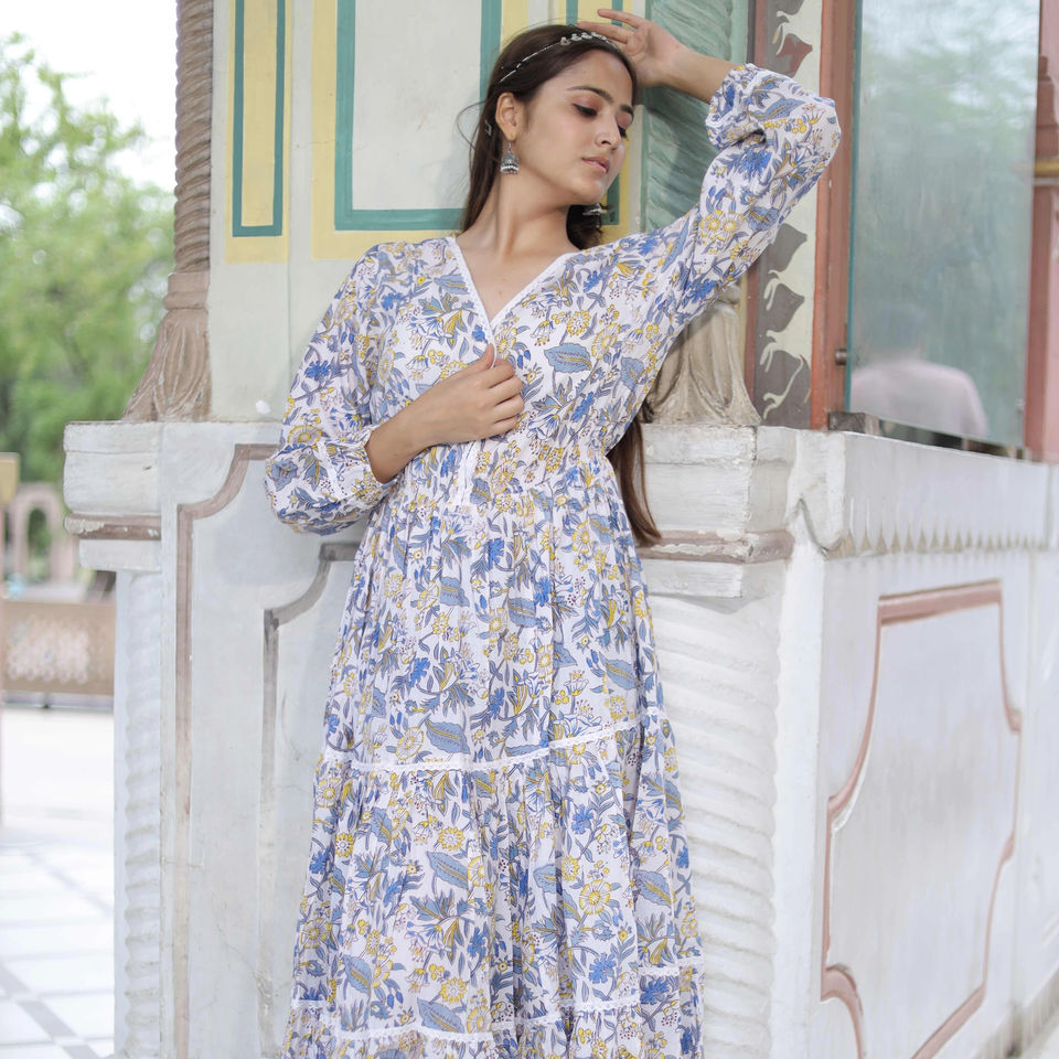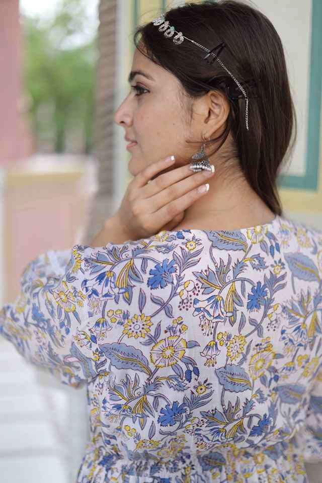 ชุดเดรสสั้นผ้าฝ้ายพิมพ์ลายดอกไม้ทำมือสไตล์อินเดียชุดเดรสปาร์ตี้สำหรับผู้หญิงของขวัญเจ้าสาวส่วนบุคคลลดราคา