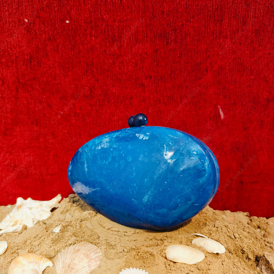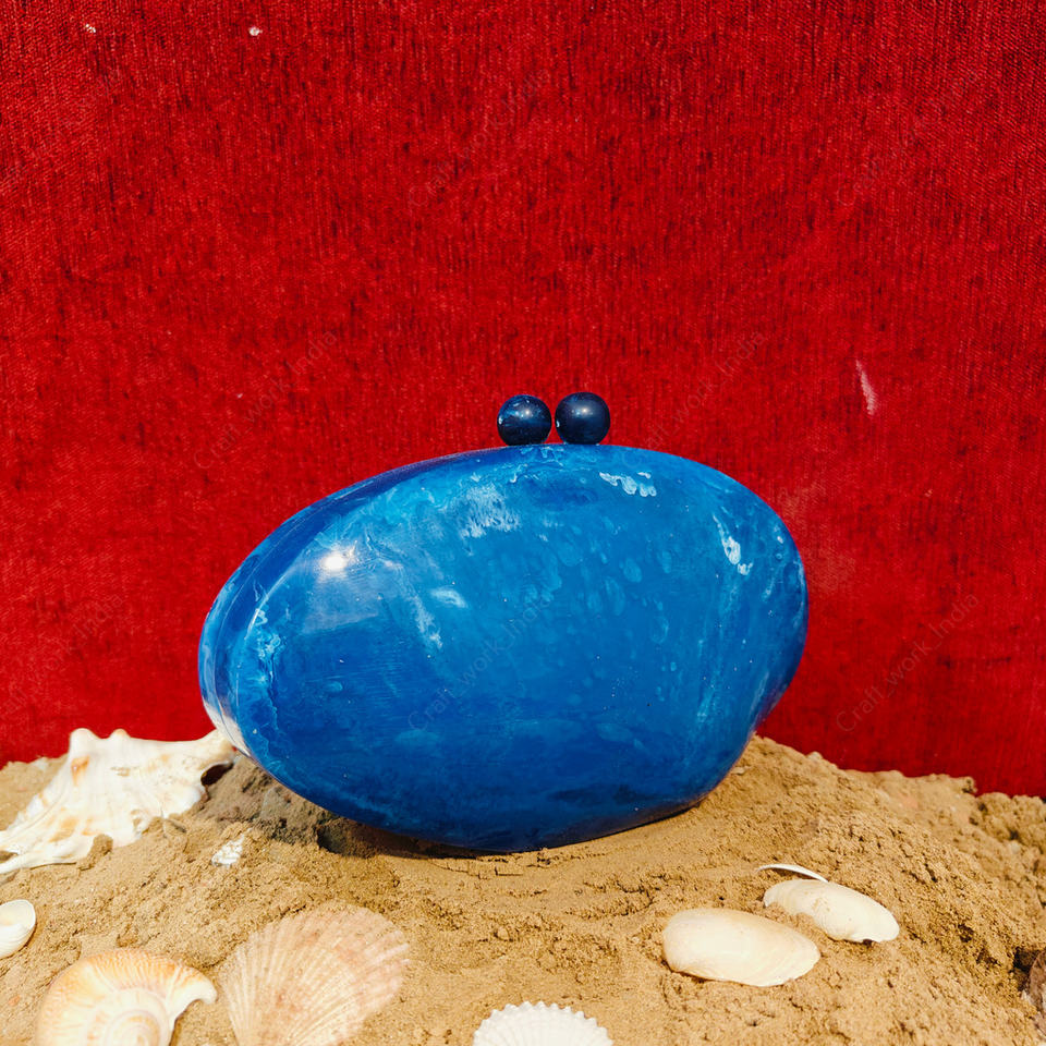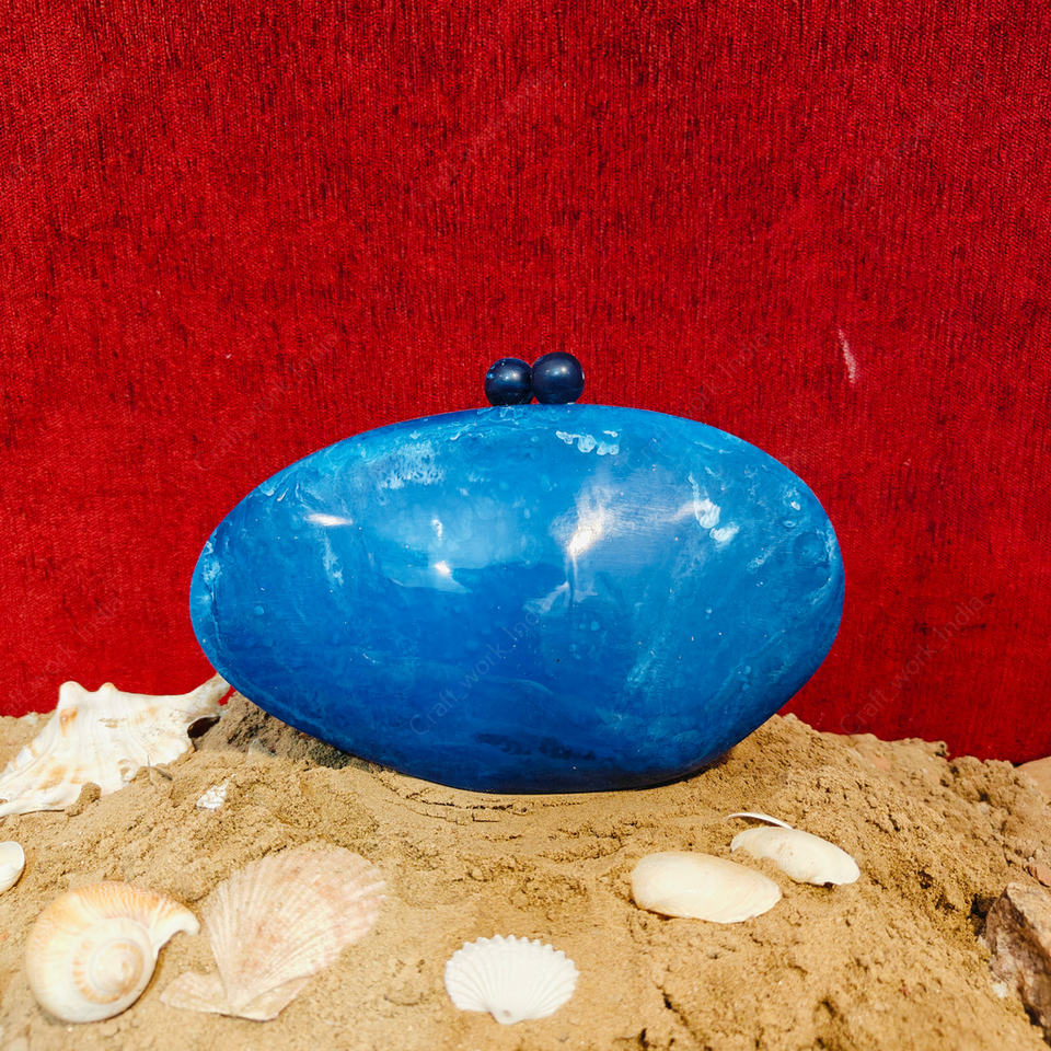 กระเป๋าคลัทช์เรซิ่นรูปไข่สีน้ำเงินสุดหรู งานแฮนด์เมดจากอินเดีย กระเป๋าแข็งสำหรับงานเลี้ยงกลางคืน งานแต่งงาน กระเป๋าคลัทช์ดีไซน์เนอร์สำหรับผู้หญิง
