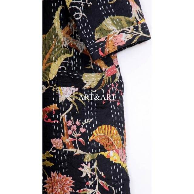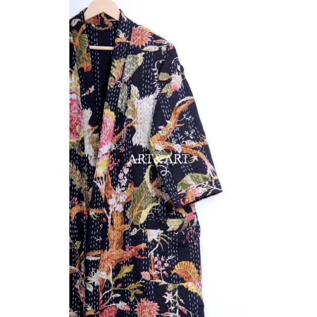 ชุดกิโมโนผ้าฝ้ายคันธาทำมือจากอินเดีย สำหรับผู้หญิงและผู้ชาย ชุดคลุมอาบน้ำชายหาดทันสมัย ลายดอกไม้ งานปะติดปะต่อ ของขวัญสำหรับเธอ ระบายอากาศได้ดี แห้งเร็ว