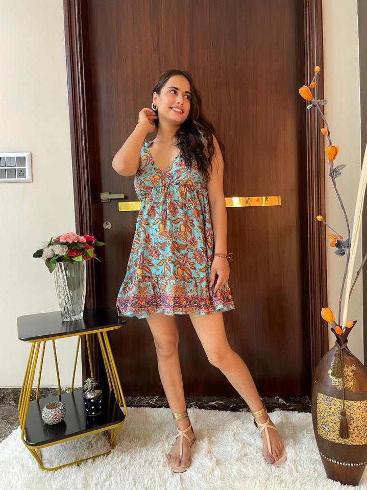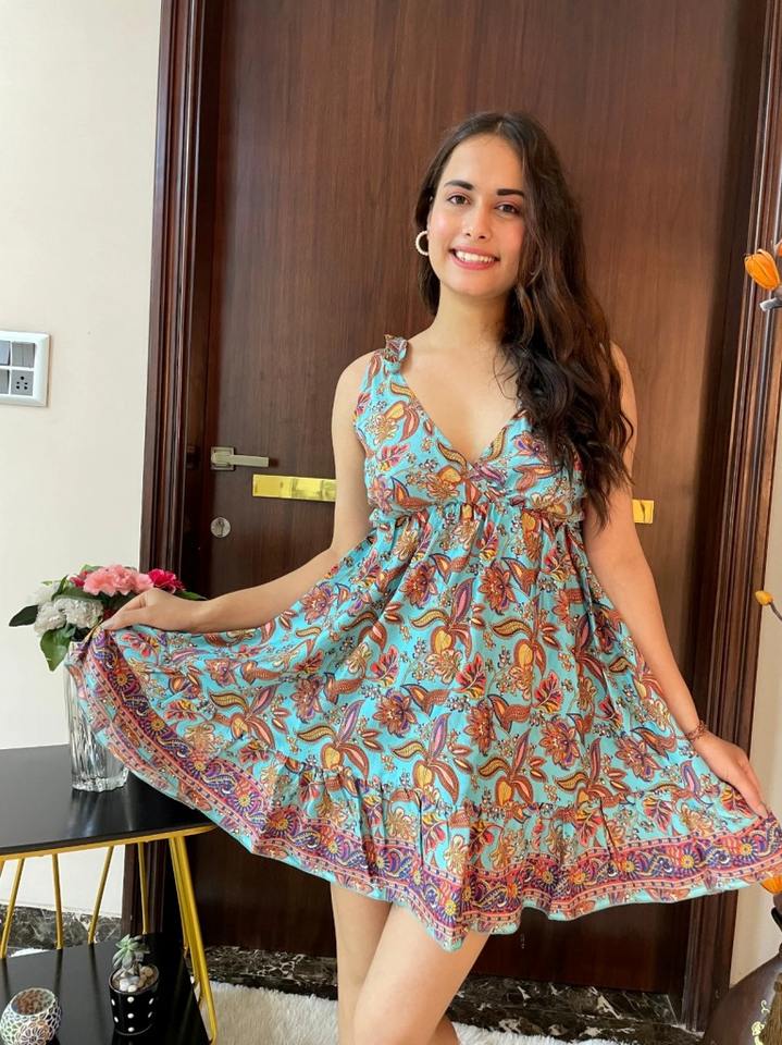 ชุดเดรสปาร์ตี้สั้นแบบมีสไตล์ทำจากผ้าฝ้ายอินเดียชุดเดรสแฟชั่นพิมพ์ลายดอกไม้สำหรับเจ้าสาว