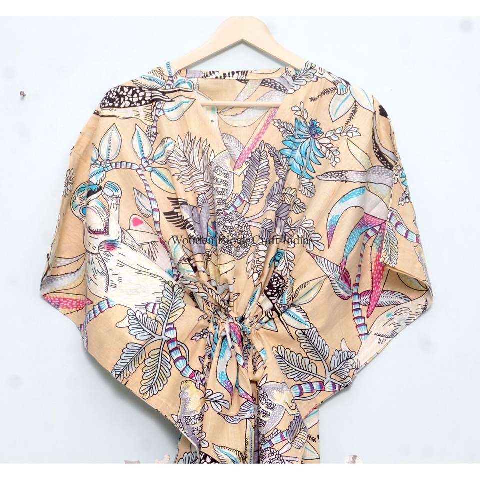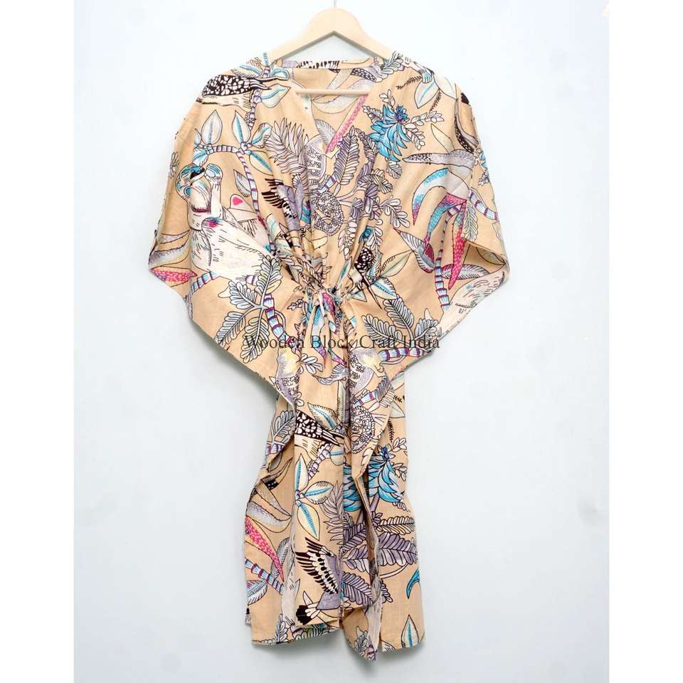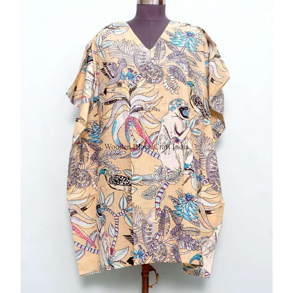 ชุดคลุมยาวพิมพ์ลายลิงอินเดีย ทำมือ เป็นมิตรกับสิ่งแวดล้อม ผ้าฝ้ายแท้ 100% น้ำหนักเบา ชุดนอนสั้น ชุดชายหาดลายดอกไม้ สำหรับฤดูร้อน