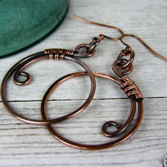 ต่างหูทองแดงสไตล์อินเดียดั้งเดิมพร้อมรายละเอียดช่างฝีมือที่ทำด้วยมือเพื่อเป็นของขวัญและคอลเลกชันส่วนตัว