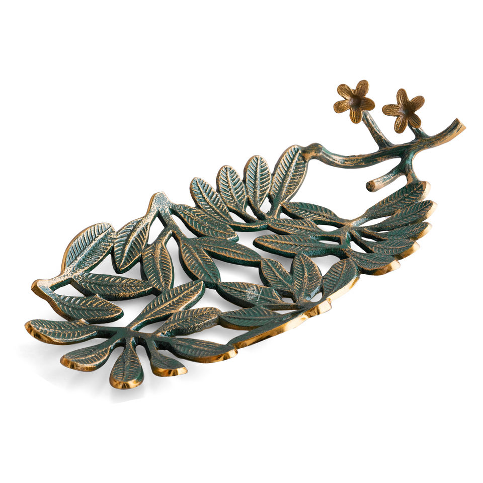 Indianartvilla ของตกแต่งใบกล้วยสีเขียวทองเหลืองตกแต่งบ้านรูปไข่ขนาด16นิ้วเน้นการตกแต่งบ้านสำหรับเป็นของขวัญ