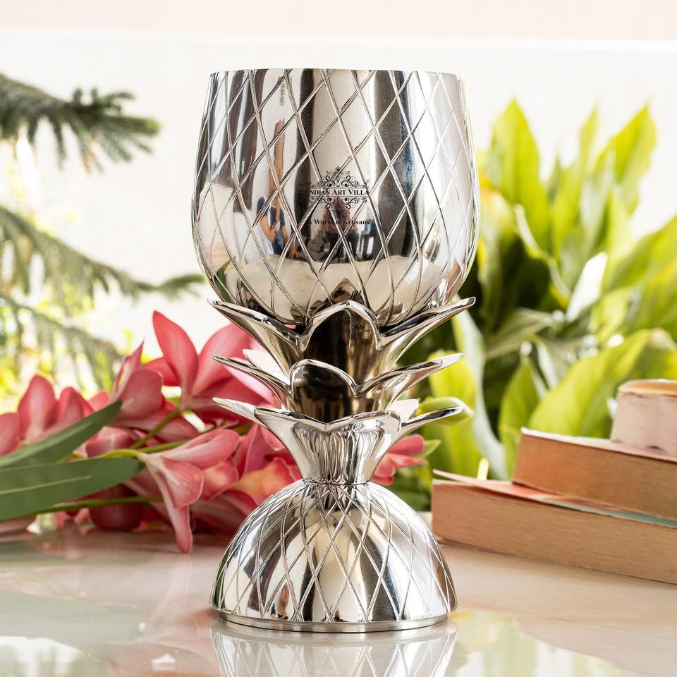 ถ้วยโลหะรูปสับปะรดสีเงินของ Andianartvilla สำหรับเครื่องดื่ม & การตกแต่งขนาด700มล.-เทศกาลและของขวัญ