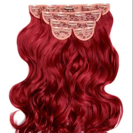 ผมต่อแบบหนีบผมมนุษย์ทำจากทับทิมสีแดงเบอร์กันดีมี4คลิปผมต่อแบบลอน100%