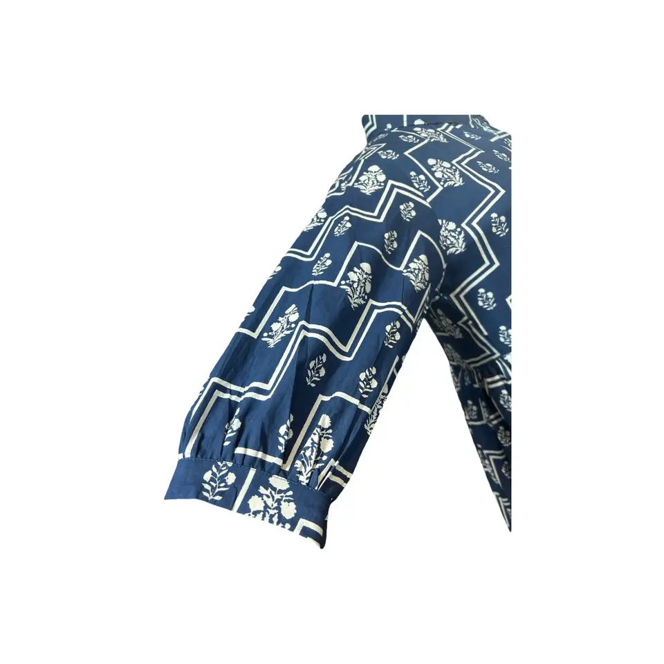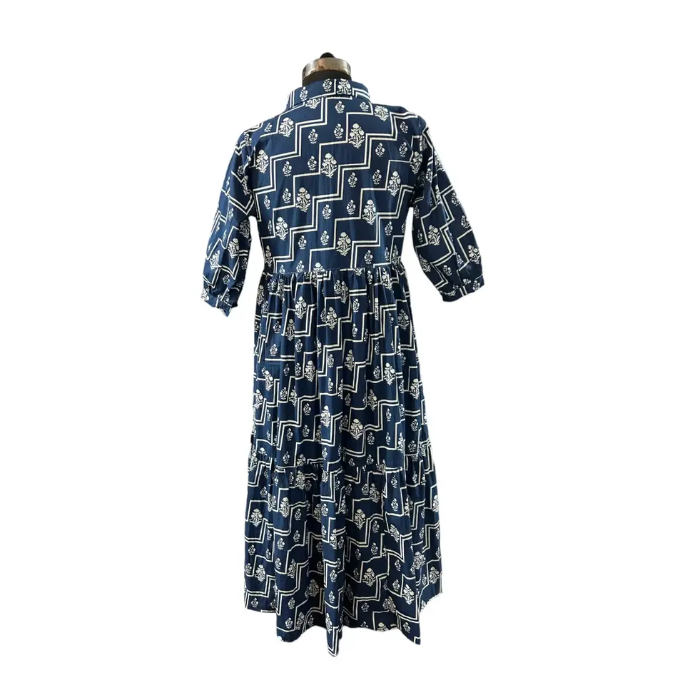 เดรสยาวสีน้ำเงินคราม พิมพ์ลายด้วยมือ ออกแบบพิเศษสำหรับสุภาพสตรีทำงาน ไซส์พลัส ระบายอากาศได้ดี ฟรีไซส์ 5XL สำหรับใส่ไปเที่ยวคลับ