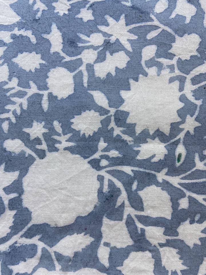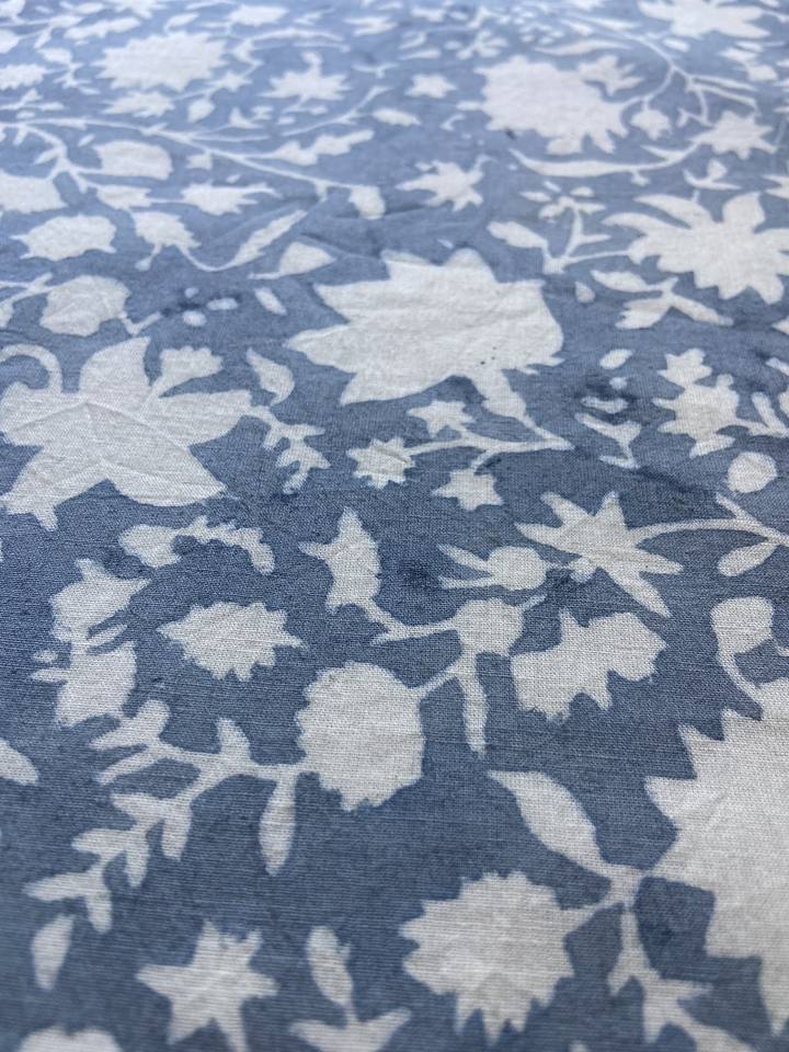 ผ้าฝ้ายพิมพ์ลายบล็อกสีน้ำเงินครามและสีขาว พร้อมลวดลายดอกไม้
