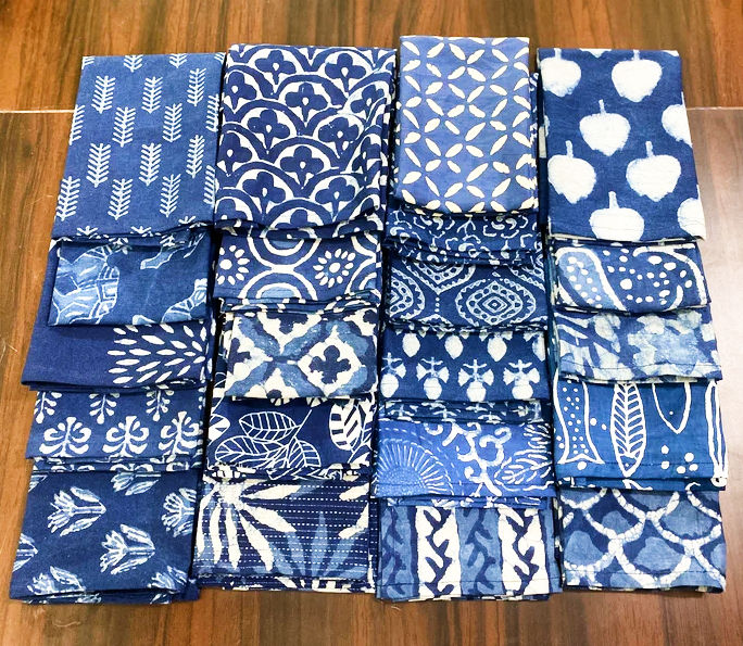 สีน้ำเงินคราม Boho ผ้าเช็ดปากค็อกเทลแบบทำมือสไตล์ทันสมัยเป็นมิตรกับสิ่งแวดล้อมผ้าฝ้ายพิมพ์ลายดินสำหรับโต๊ะอาหารค่ำงานแต่งงานนำมาใช้ใหม่