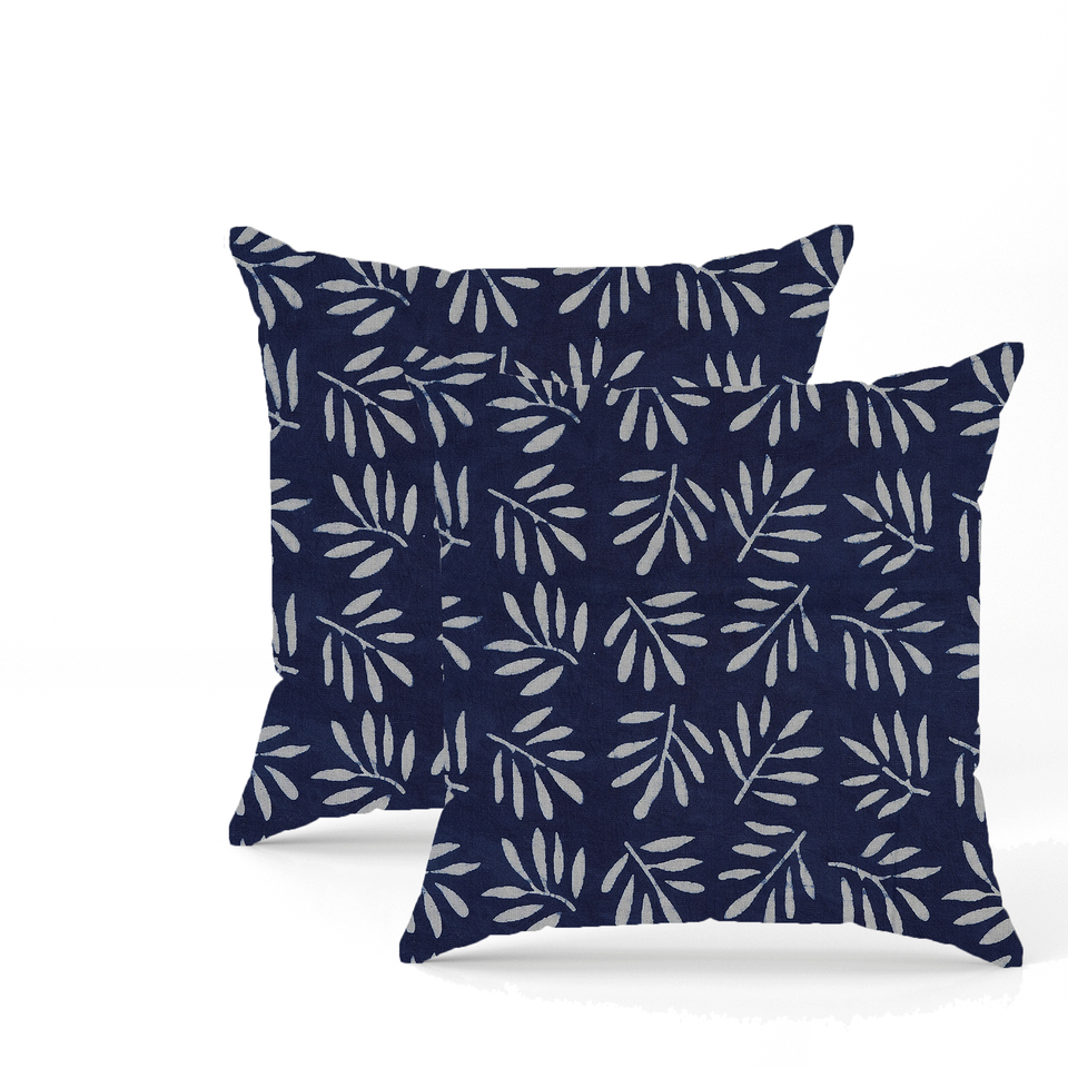 ปลอกหมอนอิงผ้าฝ้ายสีครามพิมพ์ลายด้วยมือ ลายดอกไม้สไตล์ชาติพันธุ์ ปลอกหมอนตกแต่งทำมือ ของตกแต่งบ้าน โซฟา ห้องนอน
