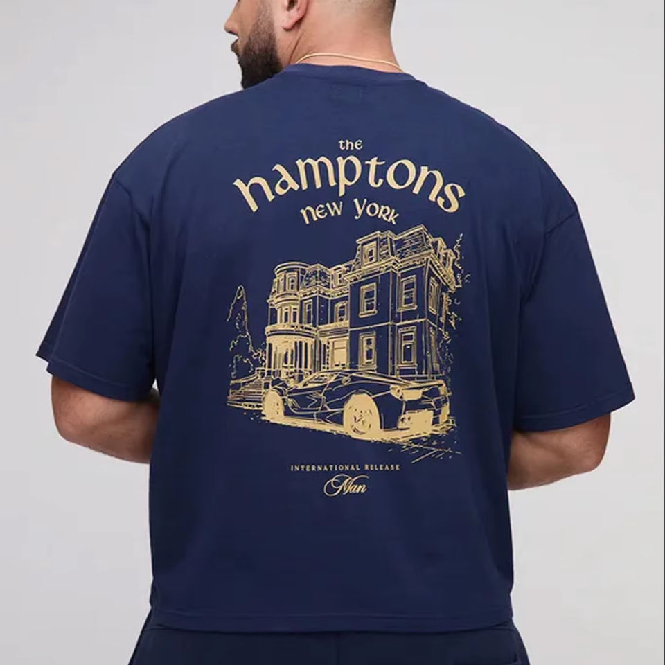 เสื้อยืดผ้าฝ้ายสำหรับผู้ชายขนาดใหญ่กว่า2025 240GSM ผ้าคอตตอนลายสตรีทแวร์สั่งทำพิเศษ100%