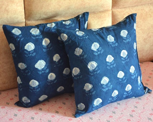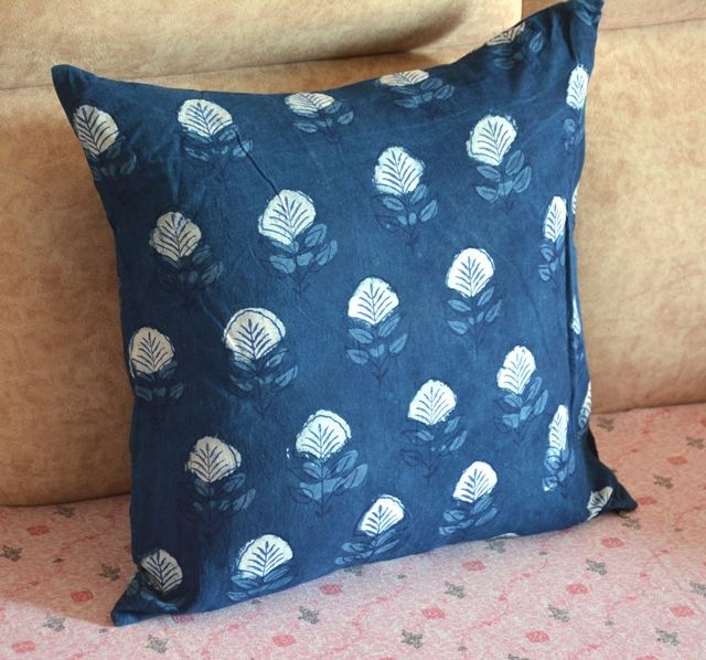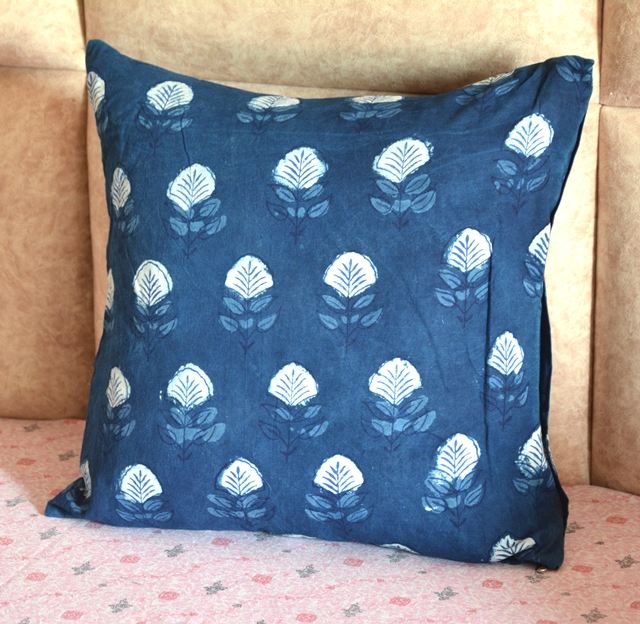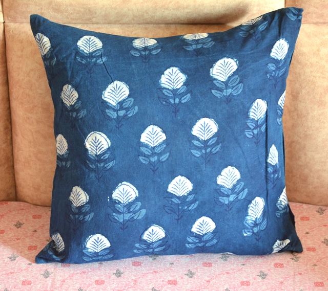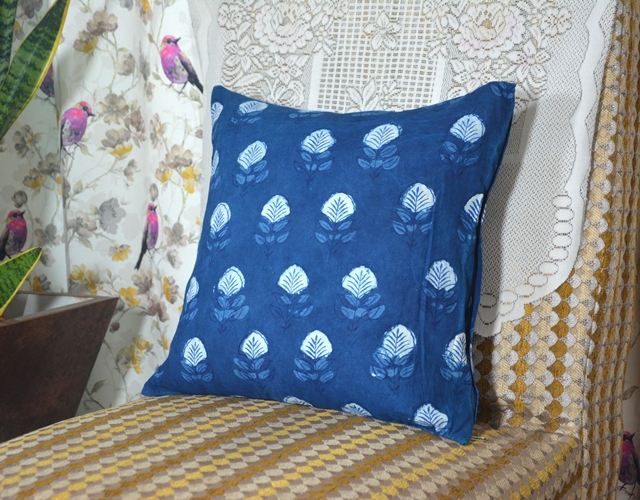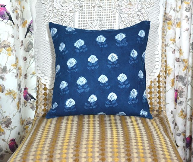 ปลอกหมอนอิงลายเรขาคณิตสีคราม ผ้าฝ้ายตกแต่ง