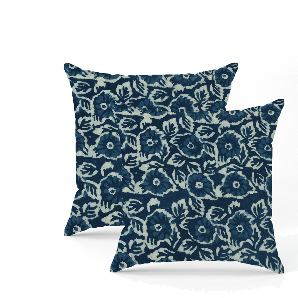 ปลอกหมอนอิงพิมพ์ลายบล็อกสีคราม ผ้าฝ้ายตกแต่งลายดอกไม้ สไตล์โบโฮ ของตกแต่งบ้าน