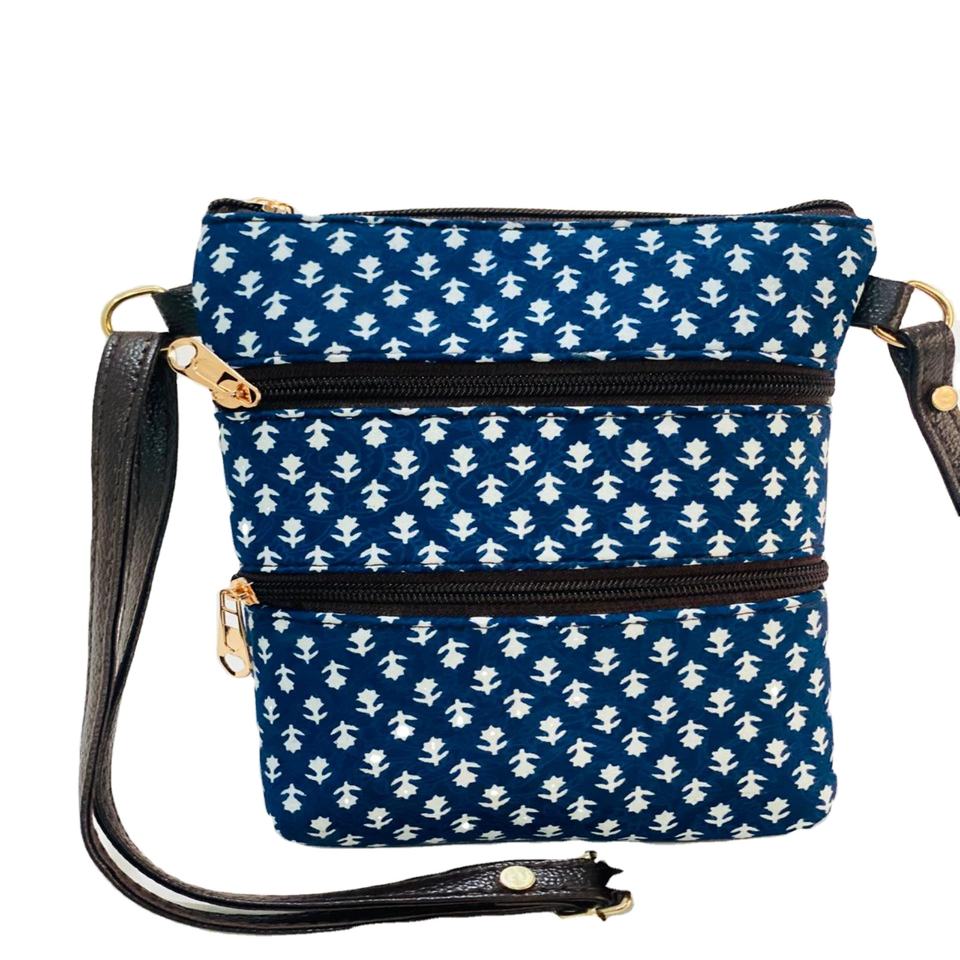 กระเป๋าสะพายข้างลายใบอินดิโก้ ทนทาน ทันสมัย น้ำหนักเบา ปรับได้ มีช่องซิปคู่ สไตล์ชาติพันธุ์ กระเป๋าถือลำลองสำหรับผู้หญิง