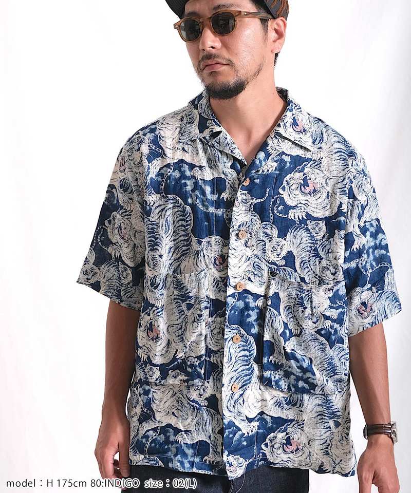 เสื้อยืดผ้าฝ้ายพิมพ์ลายเสือสัตว์สีครามสไตล์วินเทจหรูหรา