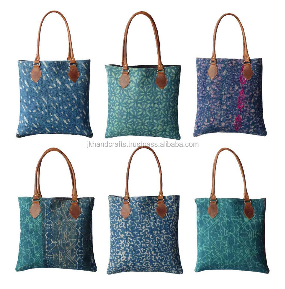 กระเป๋าถือ Kantha พิมพ์ลายคราม