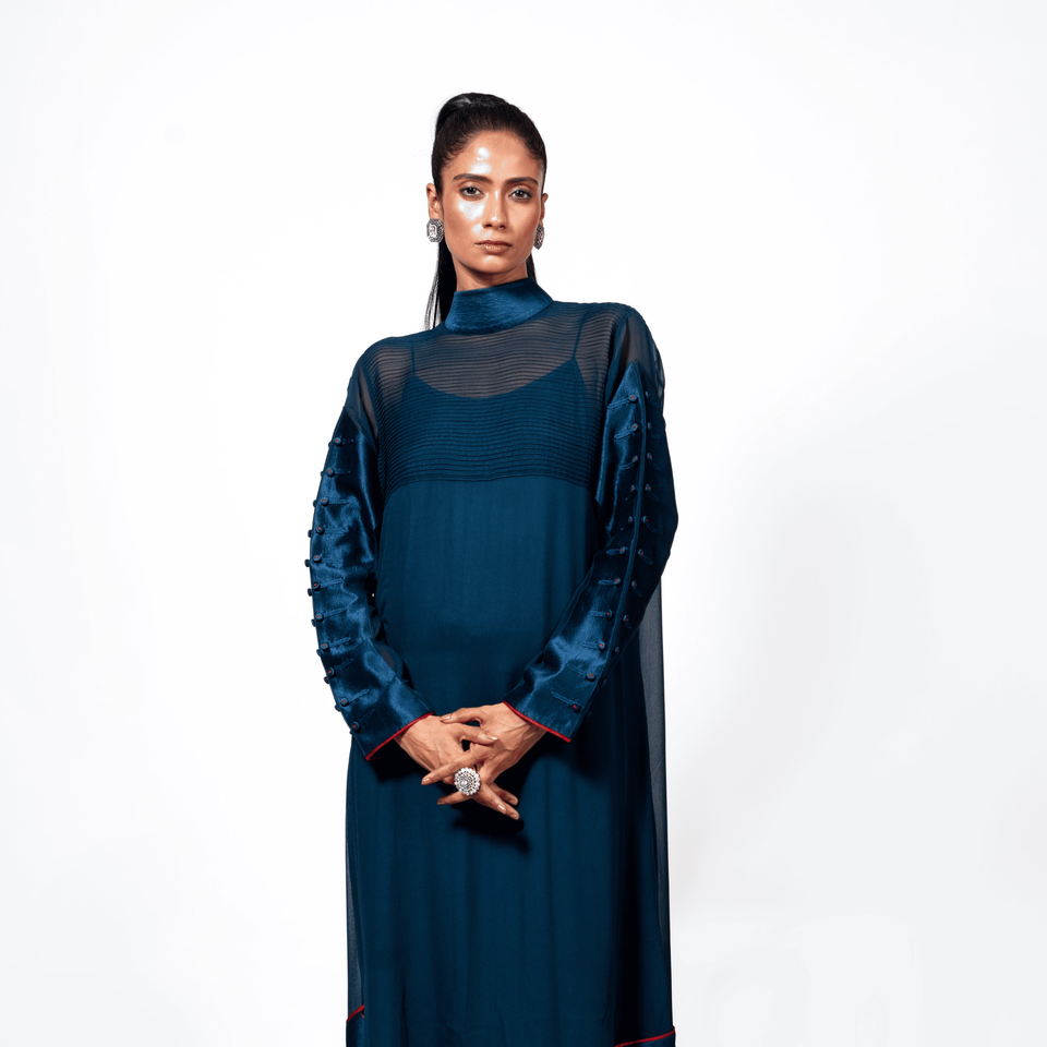 ชุดเดรสคุर्ติแบบพินทัคส์สีแดงอินดิโก้ - Indigo Sentinel