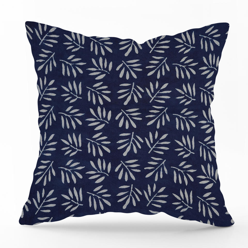 ปลอกหมอนอิงผ้าฝ้ายอินดิโกแบบยั่งยืน พิมพ์ลายด้วยมือ สำหรับตกแต่ง