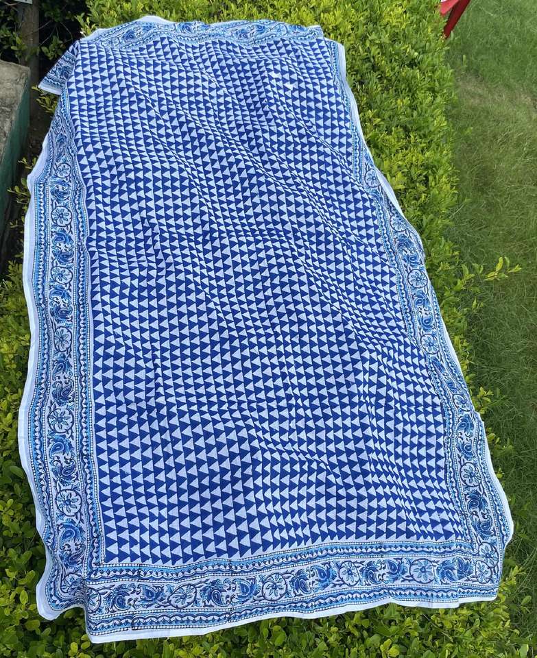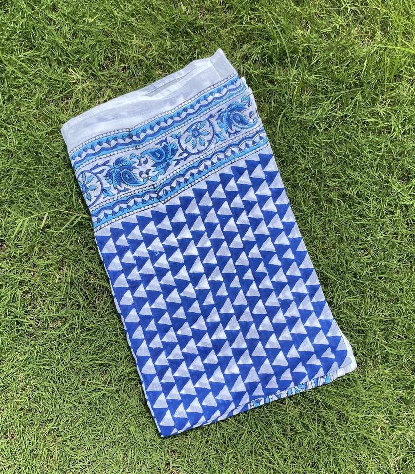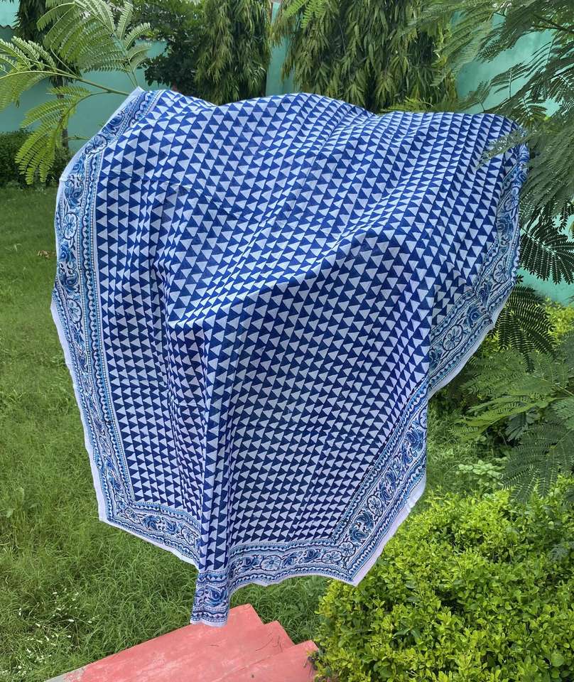 ผ้าซิ่นสีครามทำจากผ้าฝ้ายพิมพ์ลายด้วยมือ สำหรับผู้หญิง ใช้คลุมชุดว่ายน้ำ ผ้าพันชายหาด รูปทรงสามเหลี่ยม ทำด้วยมือ เหมาะสำหรับใช้ในช่วงฤดูร้อน