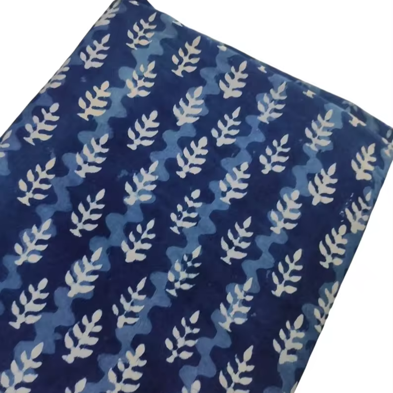 พิมพ์บล็อคมือสีน้ําเงินครามสําหรับควิลท์, ชุดเดรส, ผ้าพิมพ์ลายดอกไม้สีน้ําเงินตามยาร์ด ผ้าฝ้ายสําหรับเบาะ