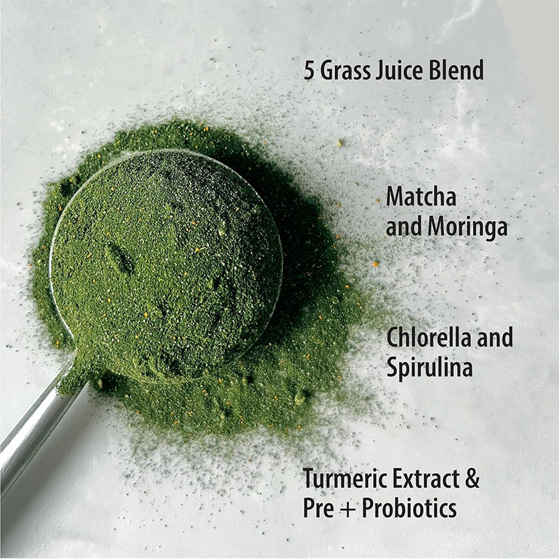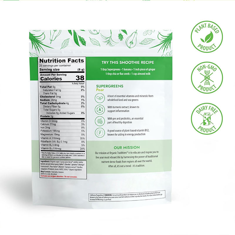 ผงโปรไบโอติกวิตามินสีเขียวสำหรับคนทานมังสวิรัติ ยี่ห้อ Supergreens ช่วยส่งเสริมการย่อยอาหาร ผสมขมิ้น ช่วยเสริมภูมิคุ้มกัน