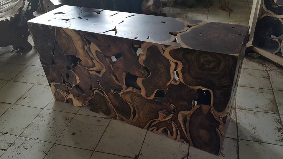อินโดนีเซียชวาสองโทนโต๊ะข้างไม้ที่แปลกใหม่แสงสีดำหั่นบางๆเฟอร์นิเจอร์รากธรรมชาติสำหรับรับประทานอาหารซูเปอร์มาร์เก็ตยิม-สำหรับโรงแรม