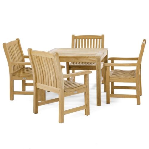 ชุดโต๊ะอาหารไม้สักดีไซน์ทันสมัย ผลิตในอินโดนีเซีย คุณภาพดี พร้อมเก้าอี้ 6 ตัว สีธรรมชาติ สำหรับโรงแรม