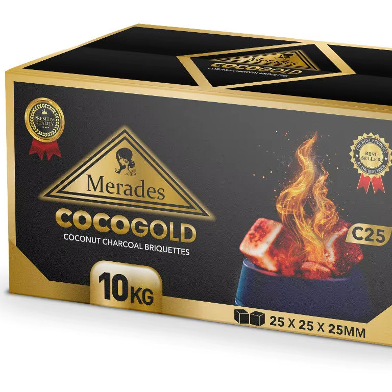 ถ่านโกโก้ทองแบบอินโดนีเซียถ่านก้อนถ่านไม่มีกลิ่นเผาไหม้นานสำหรับผู้ค้าปลีกอิรักและผู้ซื้อการให้บริการ