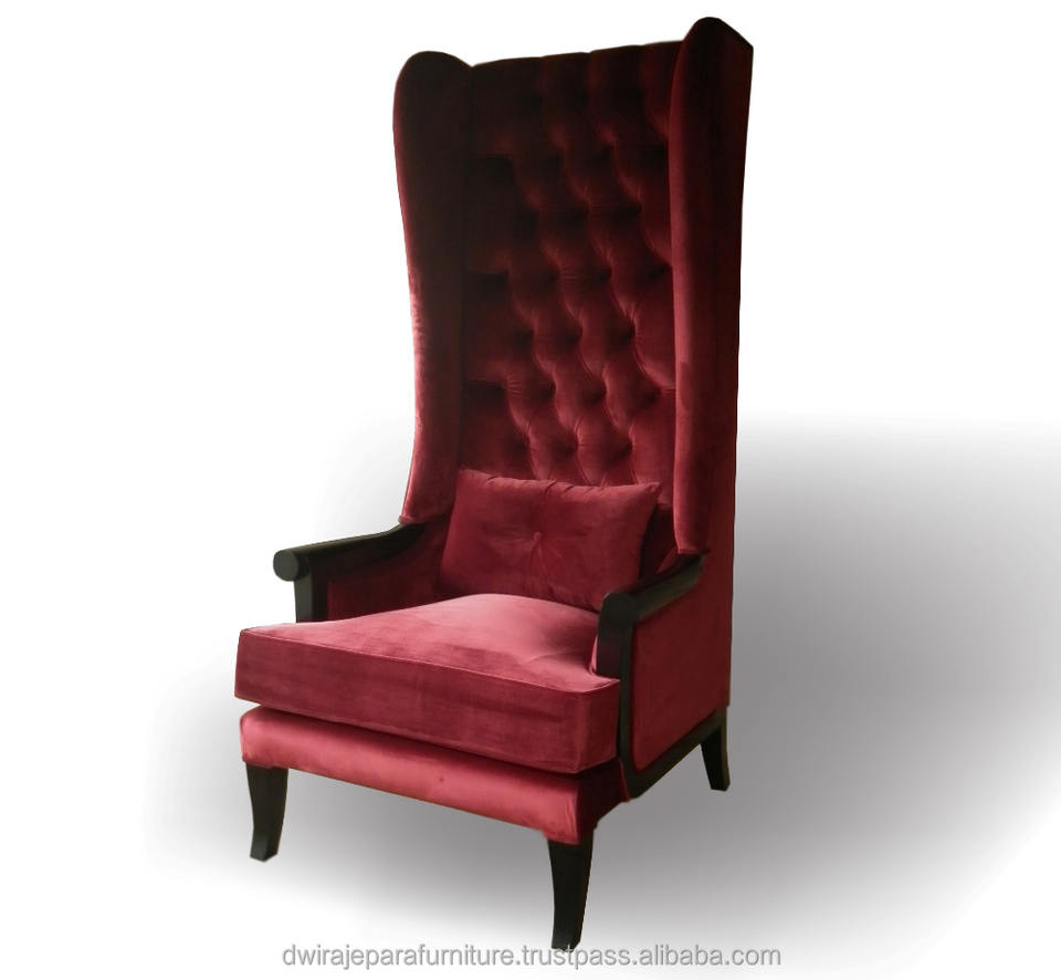 เก้าอี้ไม้มะฮอกกานีอินโดนีเซีย ดีไซน์เฟอร์นิเจอร์เก้าอี้พนักพิงสูง หุ้มผ้าสีไวน์