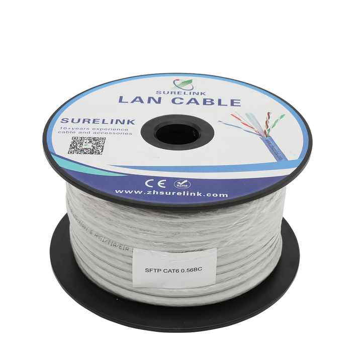 แจ็กเก็ต CCA PVC 4คู่250MHz CCA ในร่มและสายคอมพิวเตอร์305เมตรกลางแจ้ง SFTP สายสื่อสาร CAT6