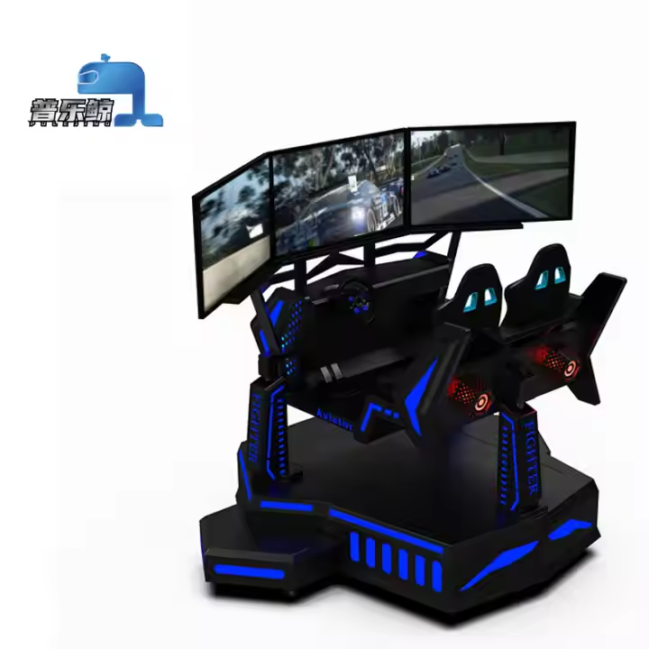 เก้าอี้เล่นเกมในร่มเก้าอี้จำลองรถแข่ง VR ทำจากโลหะสามจอ2-Seater สวนสนุก