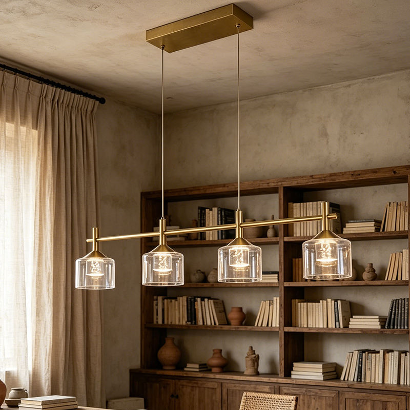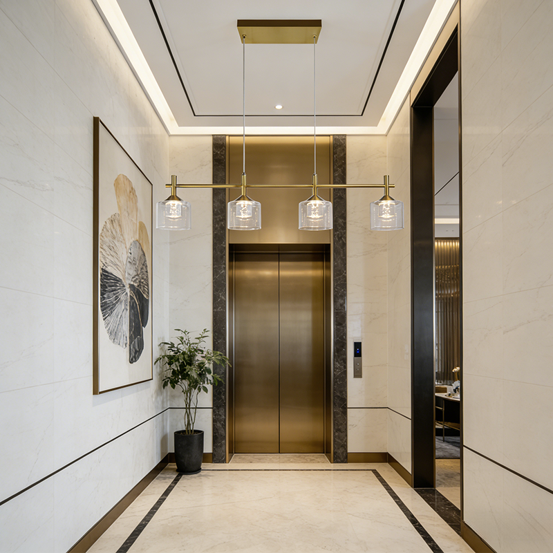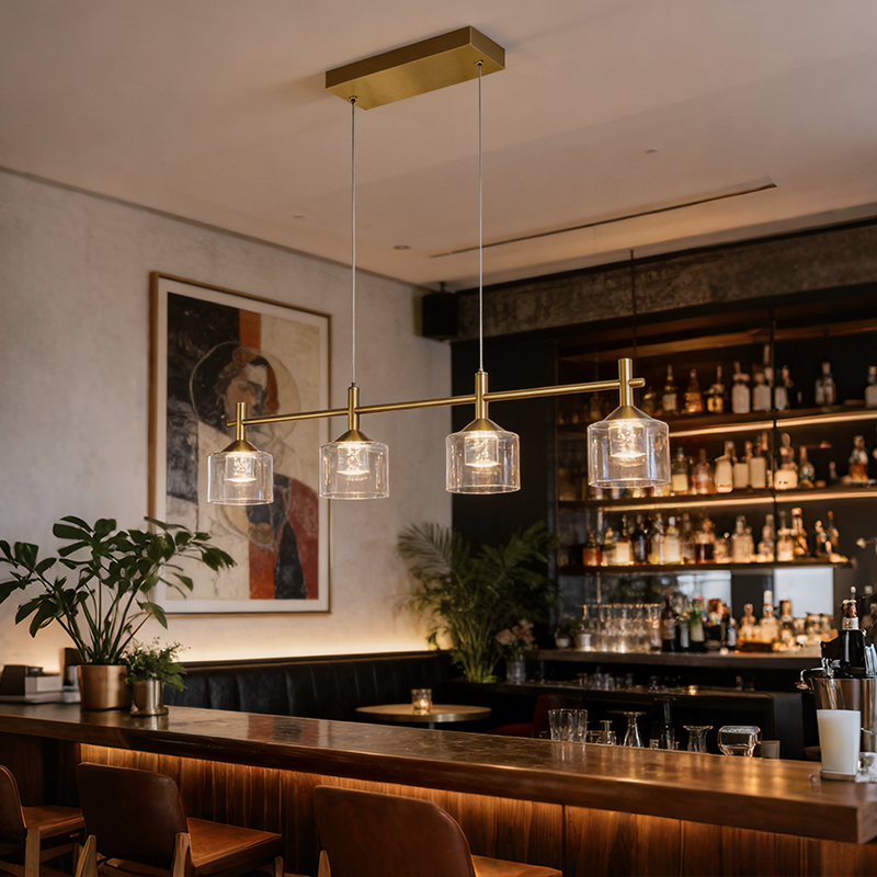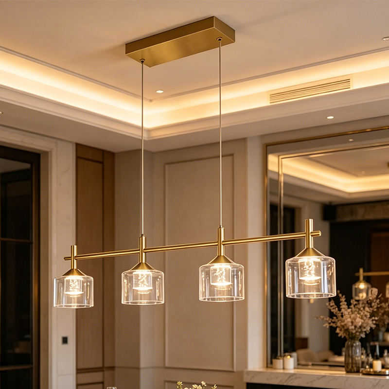 โคมไฟระย้าทรงเส้นตรงแก้วสีทองตกแต่งภายในสไตล์โมเดิร์นมินิมอลสำหรับโรงแรม ห้องรับประทานอาหาร ห้องนั่งเล่น ทางเดิน และโถงทางเข้า