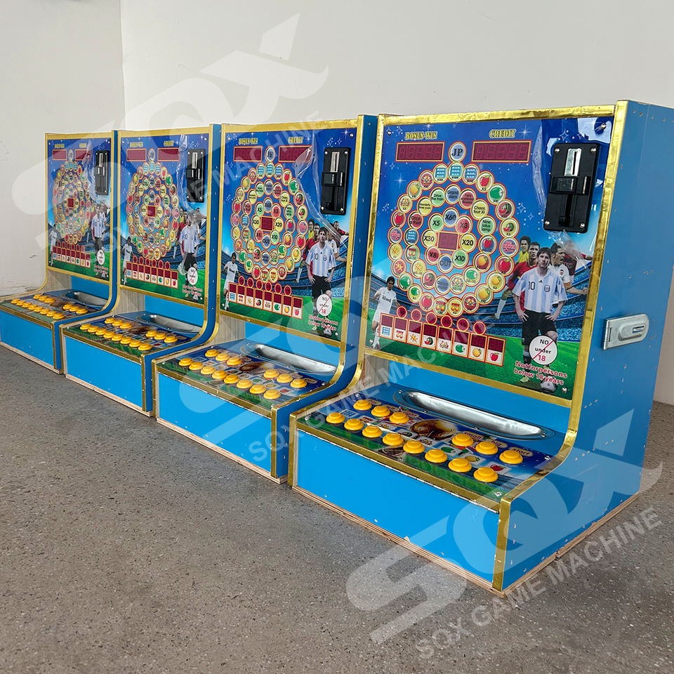 เครื่องเกมมาริโอแบบหยอดเหรียญบนโต๊ะในร่ม