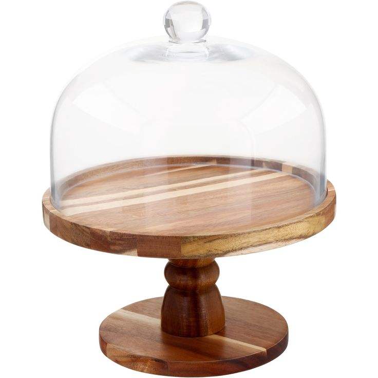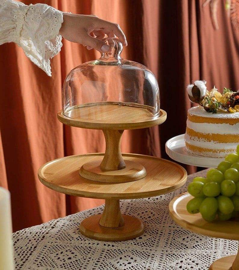 แท่นวางเค้กไม้พร้อมฝาแก้ว