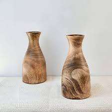 ชุดแจกันดอกไม้ในร่ม 2 ใบ สำหรับบ้าน โรงแรม และร้านอาหาร สีน้ำตาล แจกันไม้ตั้งโต๊ะ แจกันตกแต่งบ้าน อุปกรณ์ตกแต่งบ้าน