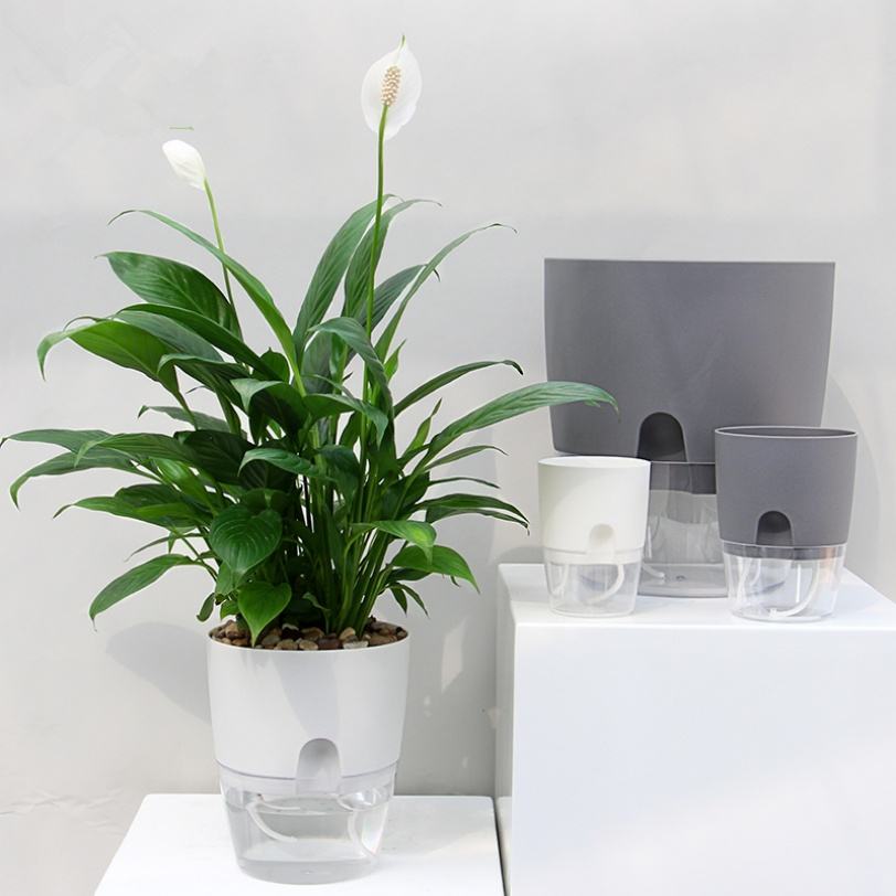กระถางต้นไม้พลาสติกสไตล์นอร์ดิกสำหรับตกแต่งบ้านในร่ม กระถางดอกไม้แบบรดน้ำเองได้สำหรับสวนในร่ม