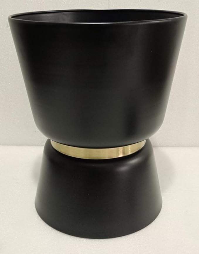 กระถางต้นไม้โลหะหรูหราสีดำขอบทอง กระถางดอกไม้ขนาดใหญ่สำหรับกลางแจ้ง แจกันตั้งพื้นแบบโมเดิร์นสำหรับทางเข้าสวน ระเบียงบ้าน แจกันตกแต่ง
