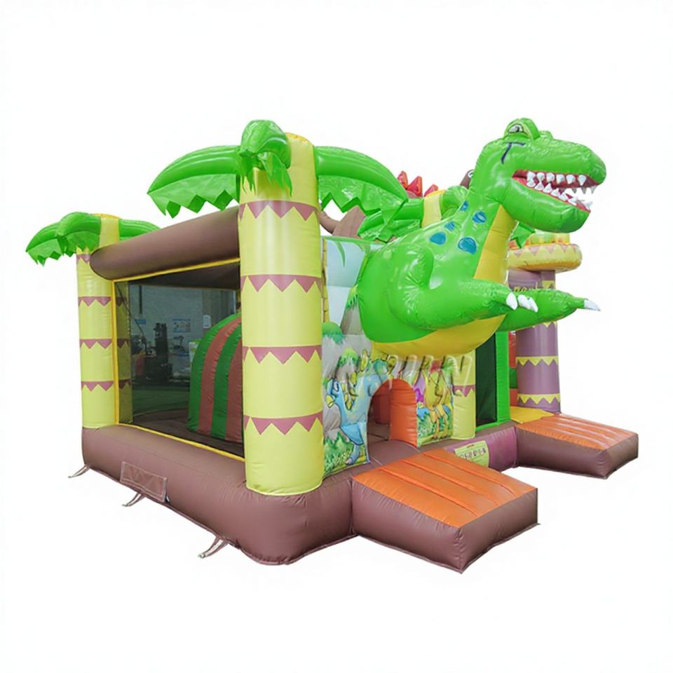 สวนสนุกในร่มเป่าลมธีมไดโนเสาร์ ชุดเครื่องเล่นปราสาทพีวีซี ทนไฟ กันน้ำ ปราศจากสารตะกั่ว ติดตั้งง่าย