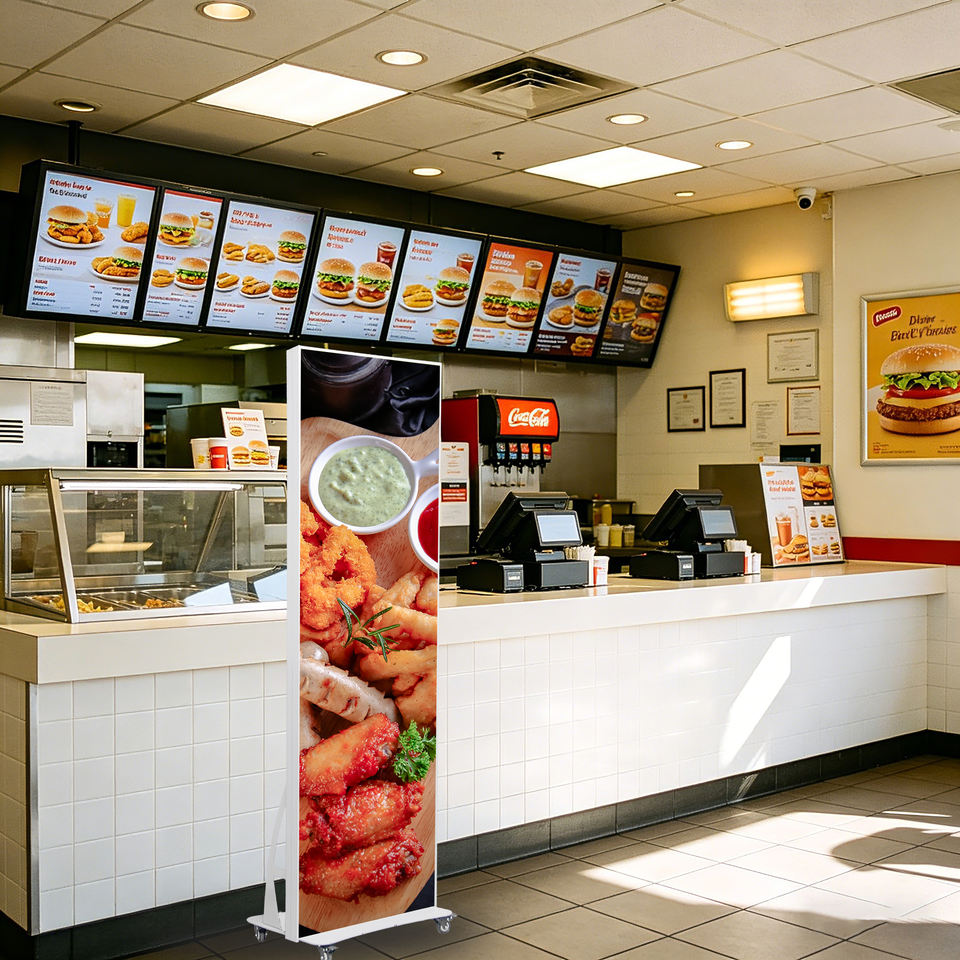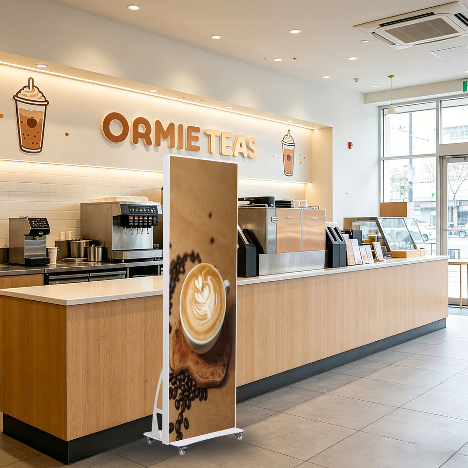 จอแสดงผล LED แบบพับได้แนวตั้งสำหรับภายในอาคาร P2.0 สีเงิน กันน้ำ IP65 ความสว่าง 500cd เหมาะสำหรับการศึกษาและการขายของ