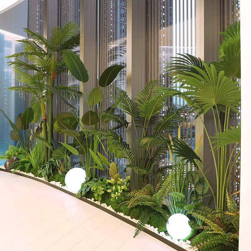 ต้นกล้วยประดิษฐ์ขนาดใหญ่ ตกแต่งภายในอาคารด้วยตาข่ายไหมไบโอนิค เหมาะสำหรับตกแต่งสำนักงาน บันได และจัดสวน