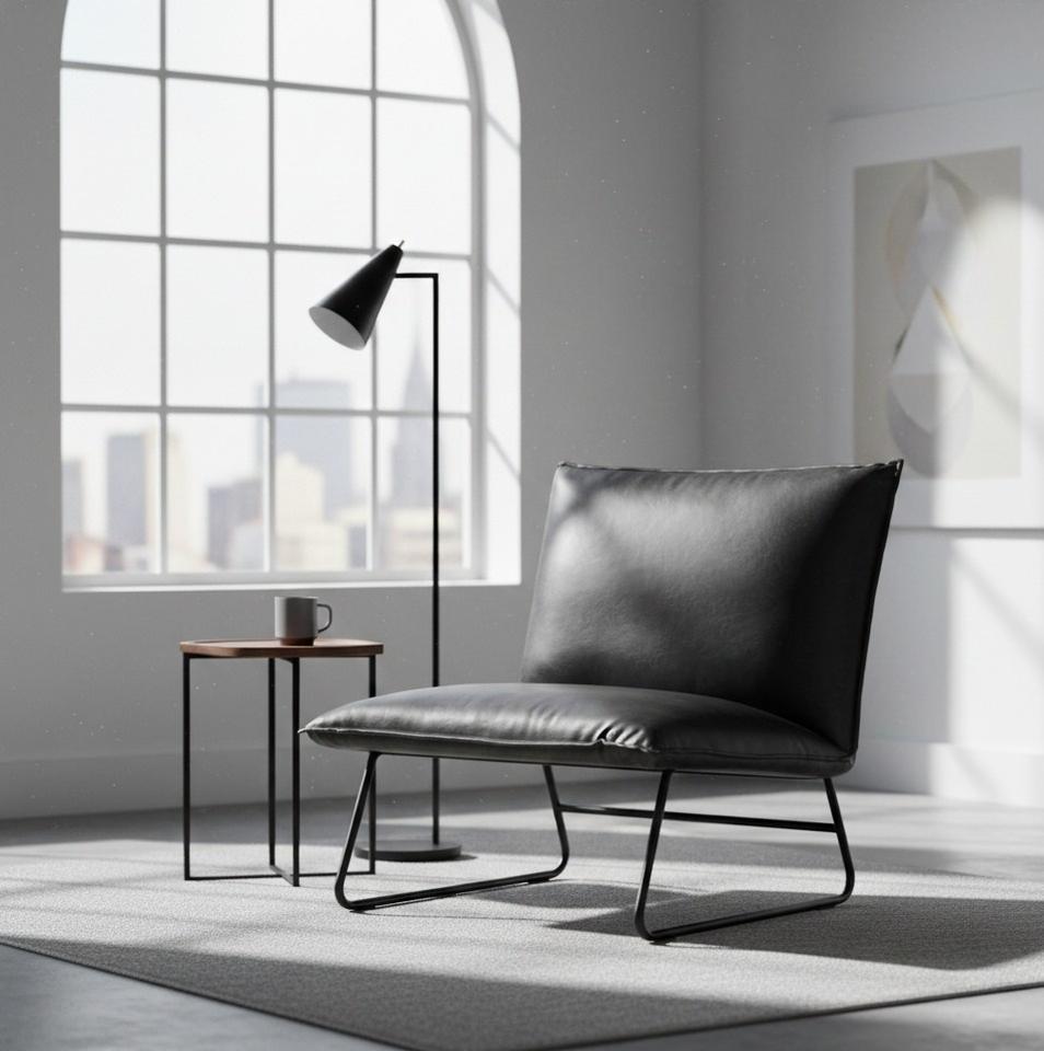 เก้าอี้พักผ่อนหุ้มหนังสำหรับใช้ภายในอาคาร เบาะโฟมนุ่ม โครงสร้างแข็งแรง เหมาะสำหรับห้องนั่งเล่น ห้องนอน คาเฟ่ ร้านอาหาร เฟอร์นิเจอร์สำหรับนั่งพักผ่อน