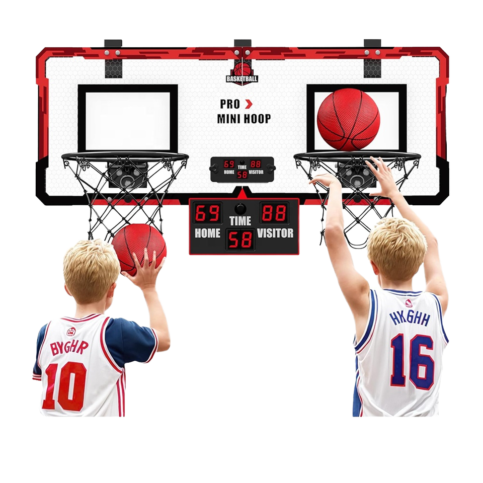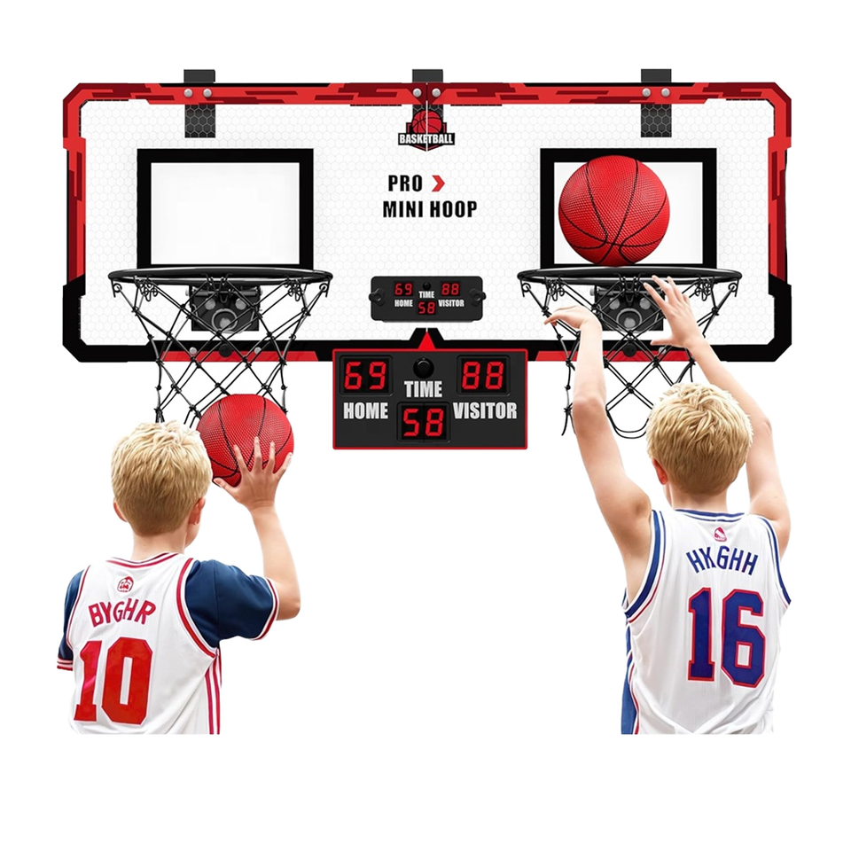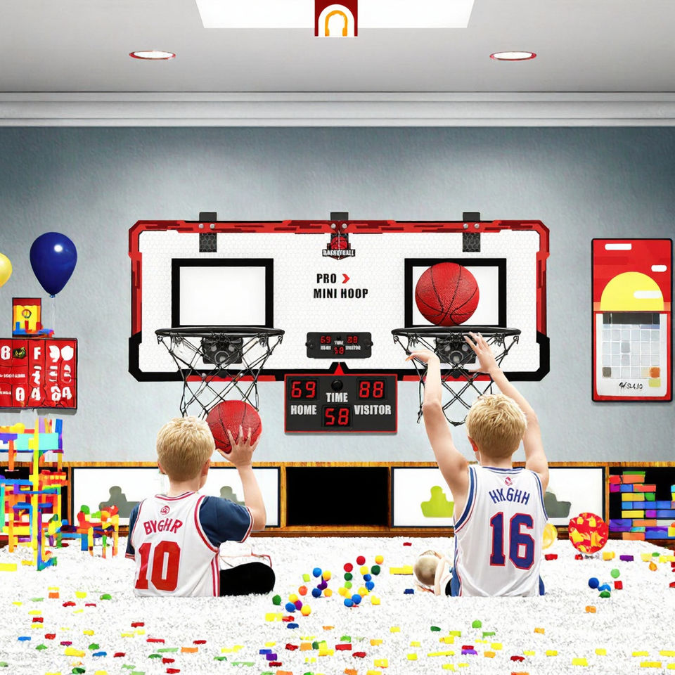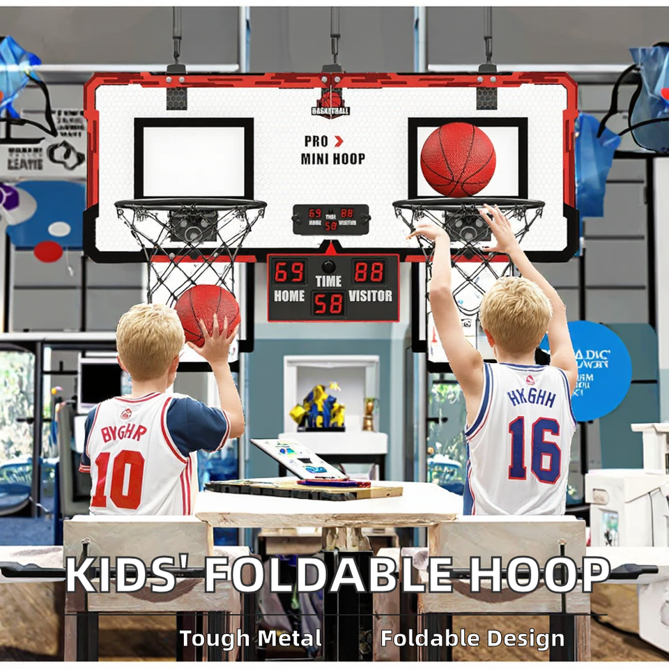 ห่วงบาสเก็ตบอลพับได้โลหะในร่มสำหรับเด็กพร้อมระบบการให้คะแนนรวมถึงลูกบอล2ลูก-อายุ3 + ปรับแต่งได้