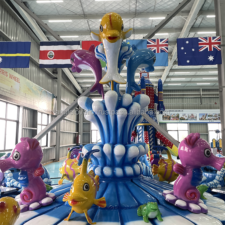 เครื่องเล่นสวนสนุกในร่ม/กลางแจ้ง เครื่องเล่นหมุนสำหรับเด็ก เกาะฉลามไฟเบอร์กลาส เกมยิงปืน น้ำพุพ่นน้ำ ธีมสวนสนุก
