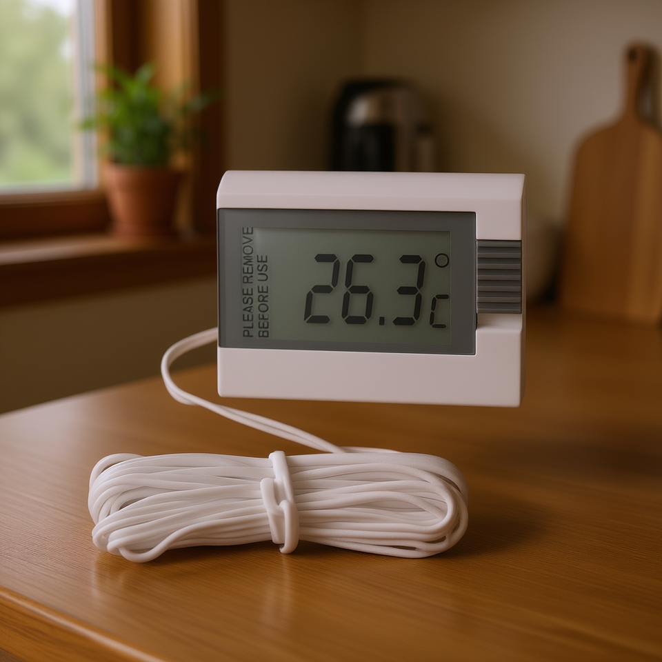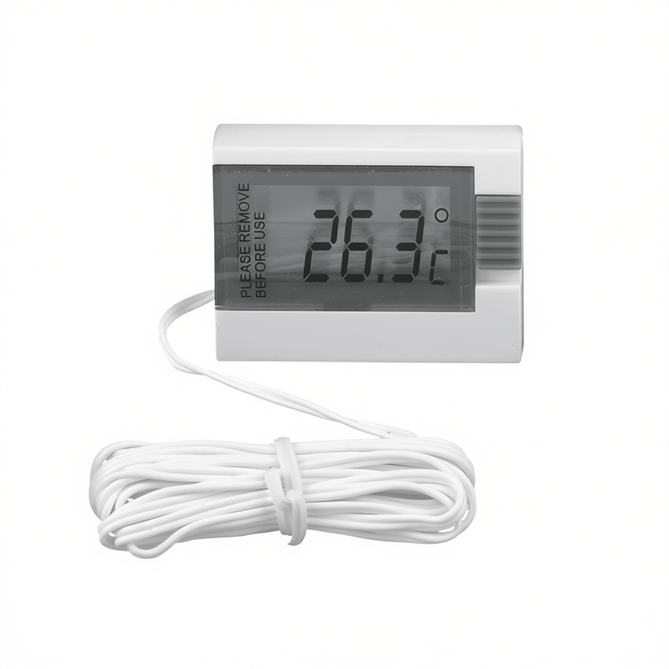 เทอร์โมมิเตอร์ดิจิตอลแบบมีหัววัด 26.3 องศาเซลเซียส สำหรับใช้ภายในและภายนอกอาคาร เหมาะสำหรับใช้ในบ้าน