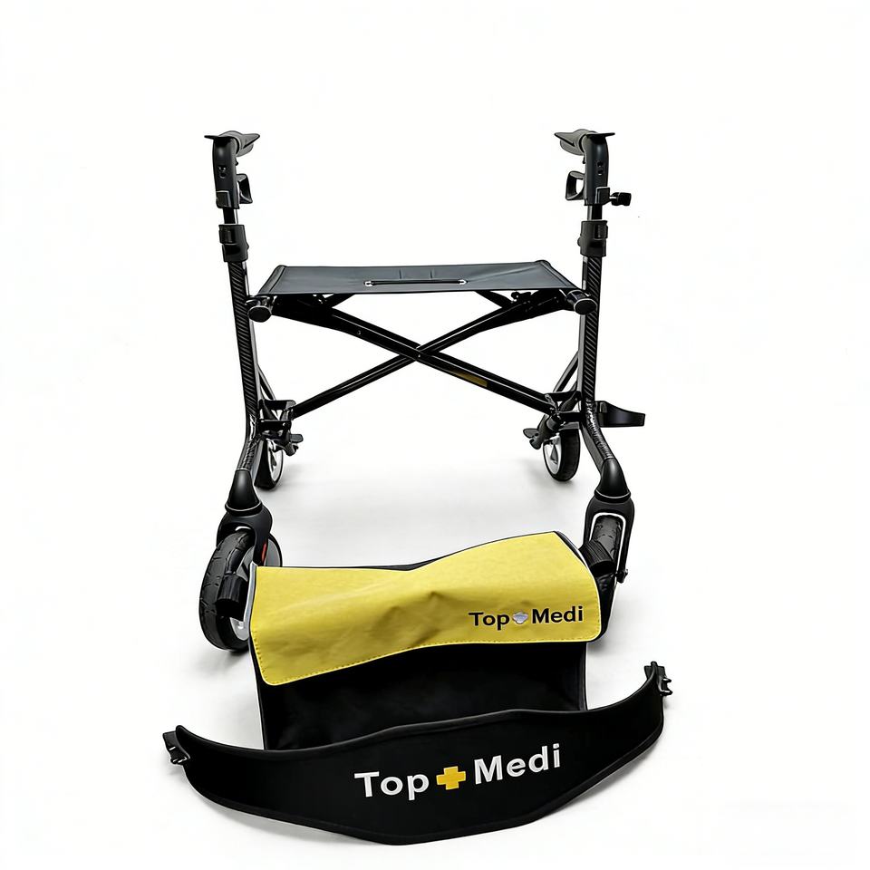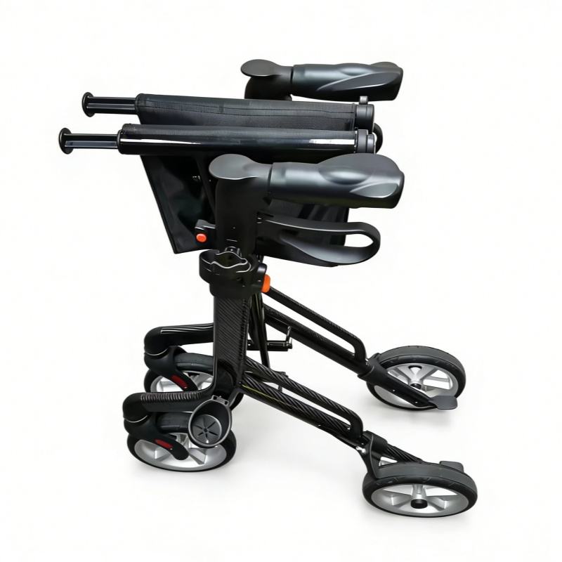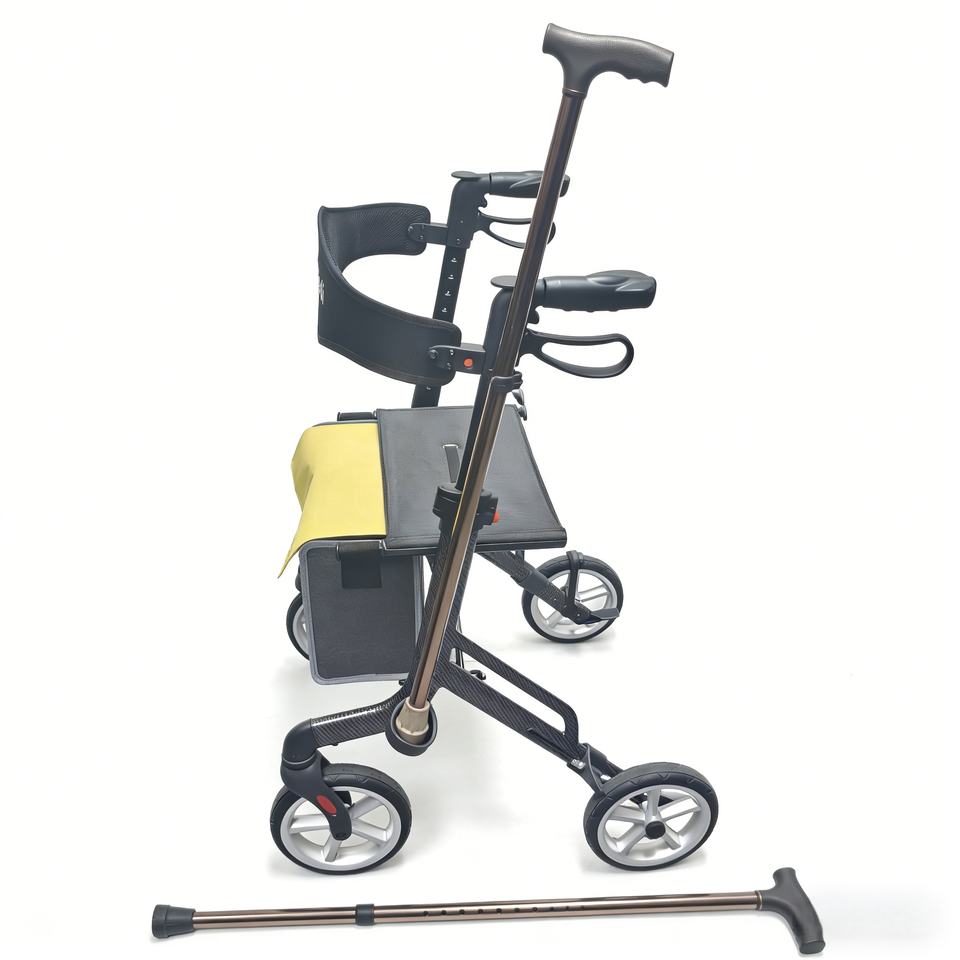 Indoor Outdoor Lightweight Aluminum Rollator with Seat - Stylish Carbon Fiber Print & Brakes