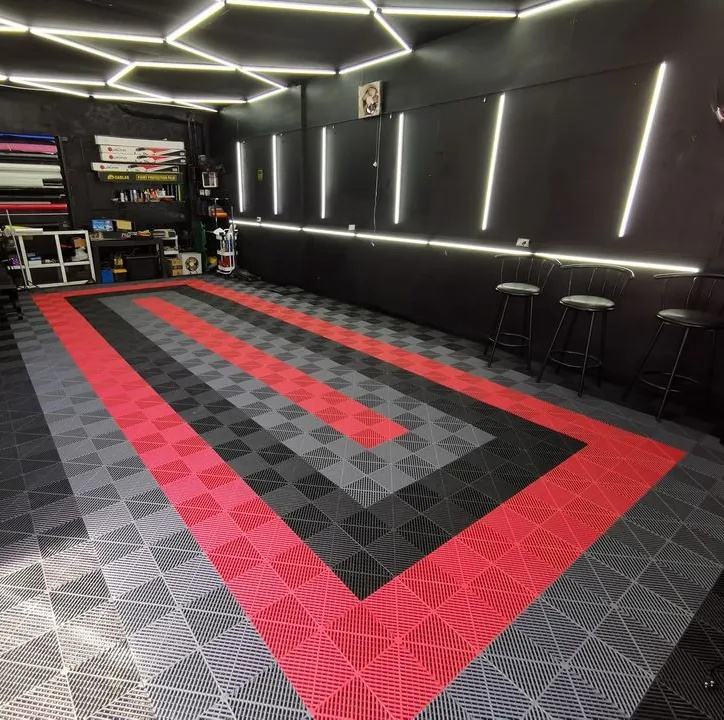 พลาสติกปูพื้นโรงรถในร่มและกลางแจ้งกระเบื้องปูพื้นโรงรถที่เชื่อมต่อกันประกบกันลื่นสำหรับรถยนต์ที่จอดรถล้างร้าน