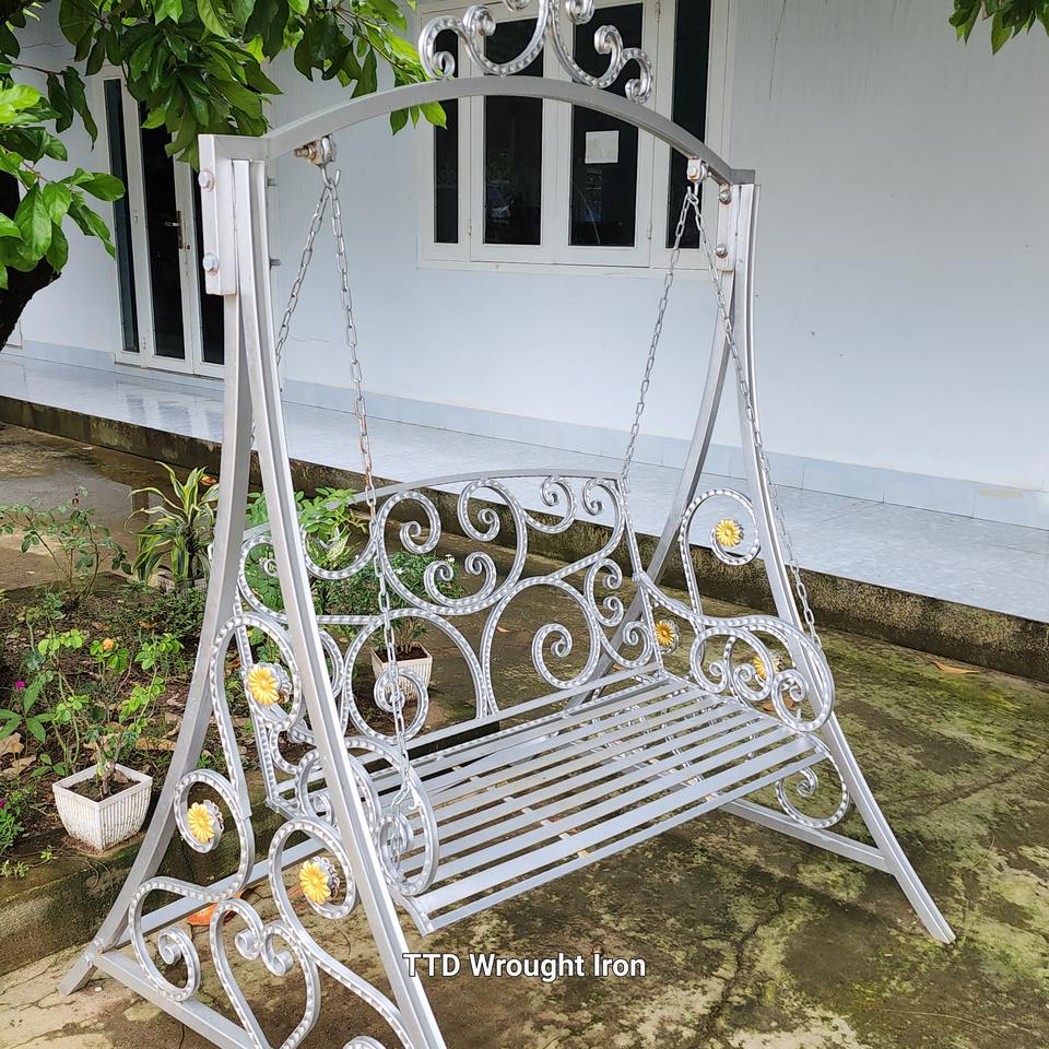 เก้าอี้ชิงช้าเหล็กดัดสำหรับใช้ในร่ม/กลางแจ้ง ดีไซน์ร่วมสมัย เฟอร์นิเจอร์สำหรับห้องนั่งเล่นและระเบียง คุณภาพสูง สีขาว เหมาะสำหรับโรงแรมและโรงเรียน
