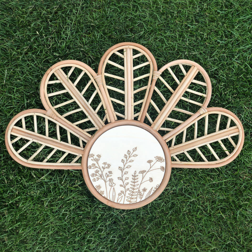 แผ่นป้ายหวายติดผนังสำหรับใช้ในบ้านและสำนักงานแผ่นป้ายรูปดอกไม้ตกแต่งในร่ม