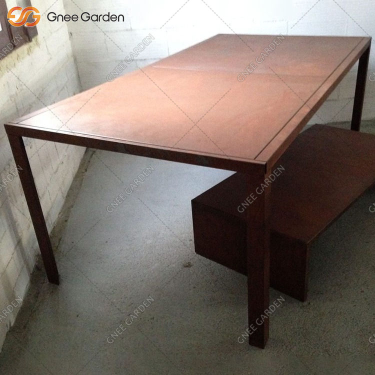 โต๊ะรับประทานอาหารเหล็กคอร์เทนแบบดั้งเดิมสำหรับใช้ภายในบ้านและโรงแรม ดีไซน์สวยงามสไตล์รัสติก ทนทานและเป็นมิตรกับสิ่งแวดล้อม
