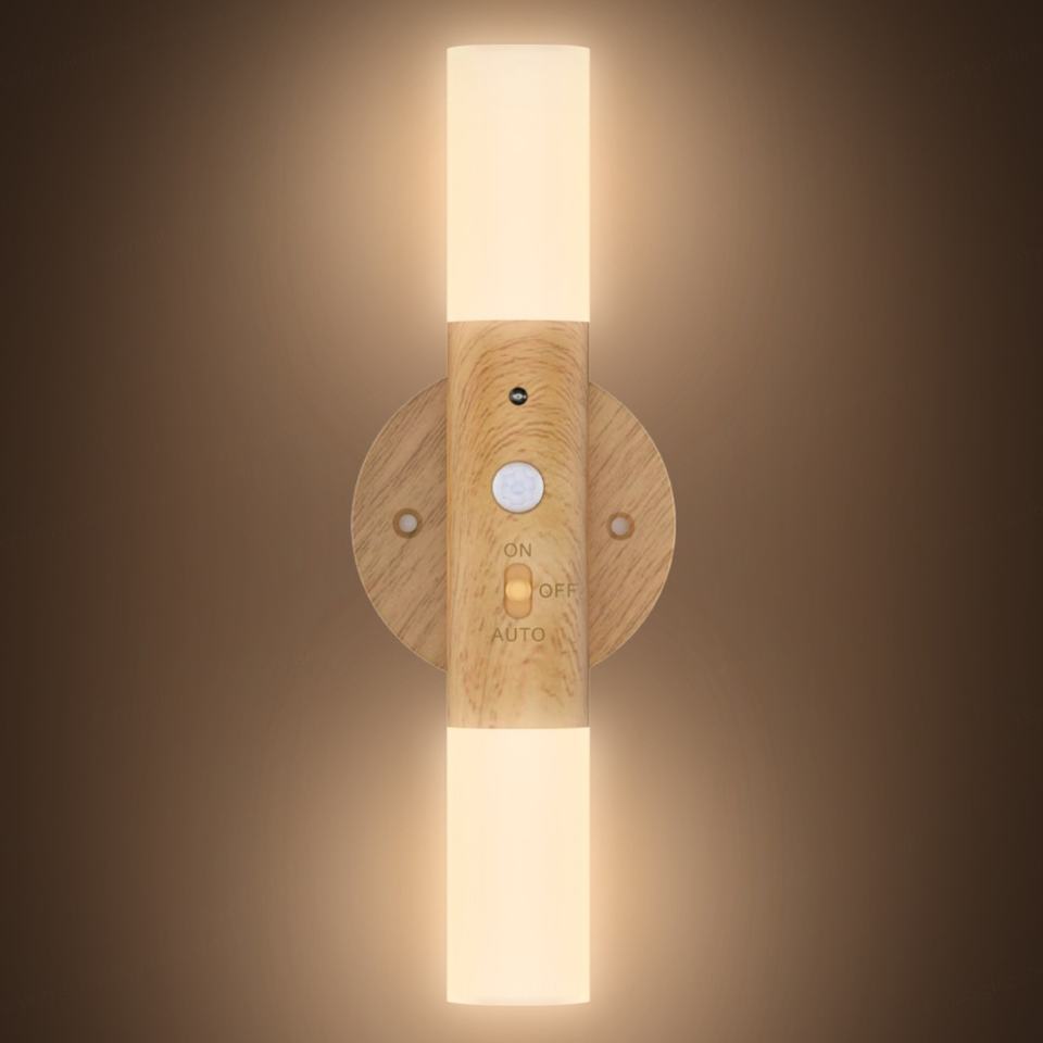โคมไฟติดผนังไม้แบบพกพาในร่ม ไฟอัจฉริยะแบบชาร์จไฟได้ โคมไฟติดผนังบันได โคมไฟติดผนังห้องเก็บของ